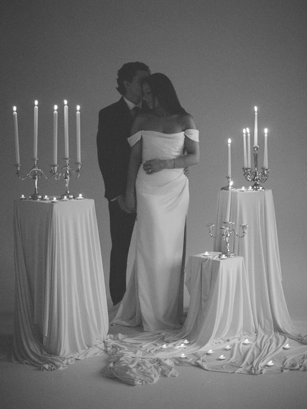 Monochrome post-wedding photos remove color to reveal what actually holds the image together: light, shadow, composition, texture, and emotion. Black and white creates a timeless quality — the kind where images feel detached from a specific year or trend, existing somewhere between past and present. That distance sharpens emotion rather than softens it: faces, gestures, negative space, and quiet tension become the focus. Monochrome works especially well for intimate close-ups, architectural settings, and scenes with strong natural light, where contrast and form carry the story. It’s a deliberate choice for couples who value depth over decoration, atmosphere over trend, and imagery that feels classic, restrained, and enduring rather than visually loud.