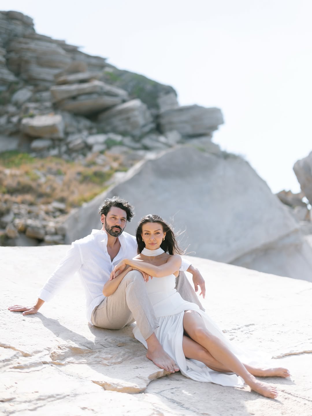 This classic pre-wedding photo style always feels timeless. Use soft lighting, close-up shots, and real embraces. Pick neutral and pastel colors like cream, beige, soft gray, or dusty pink. Avoid logos and bright patterns. Simple outfits let your emotions shine. Picture a white button-down shirt, a flowing dress, bare arms, and natural hair. Poses should feel natural, like foreheads touching, hands intertwined, or one person resting their face on the other's shoulder. The aim is to capture true intimacy, not to create a magazine cover.