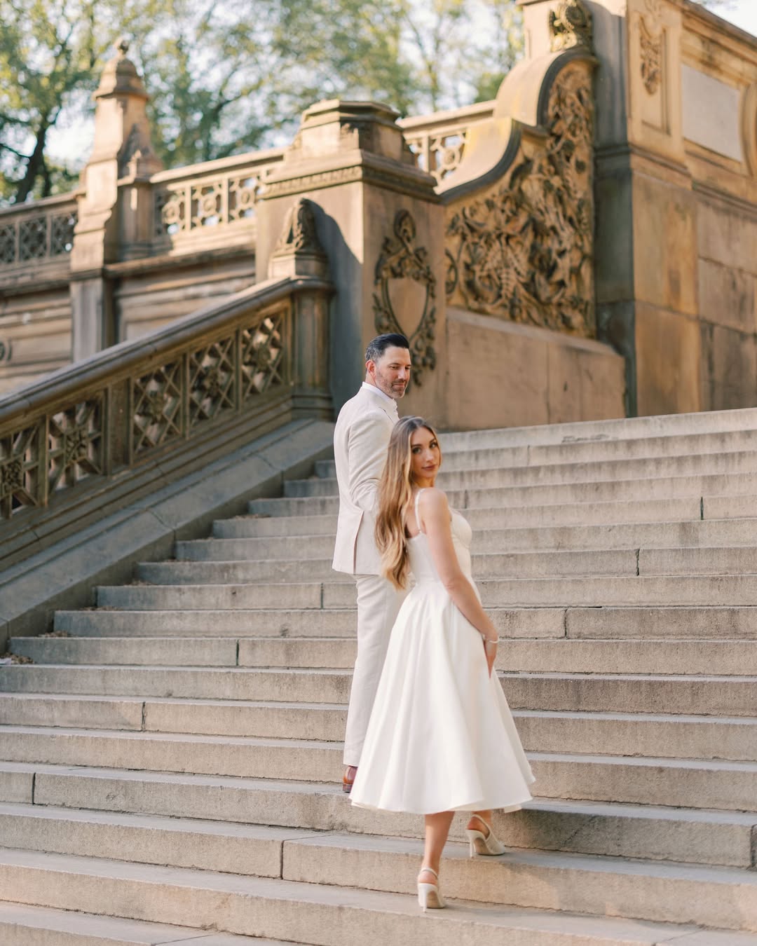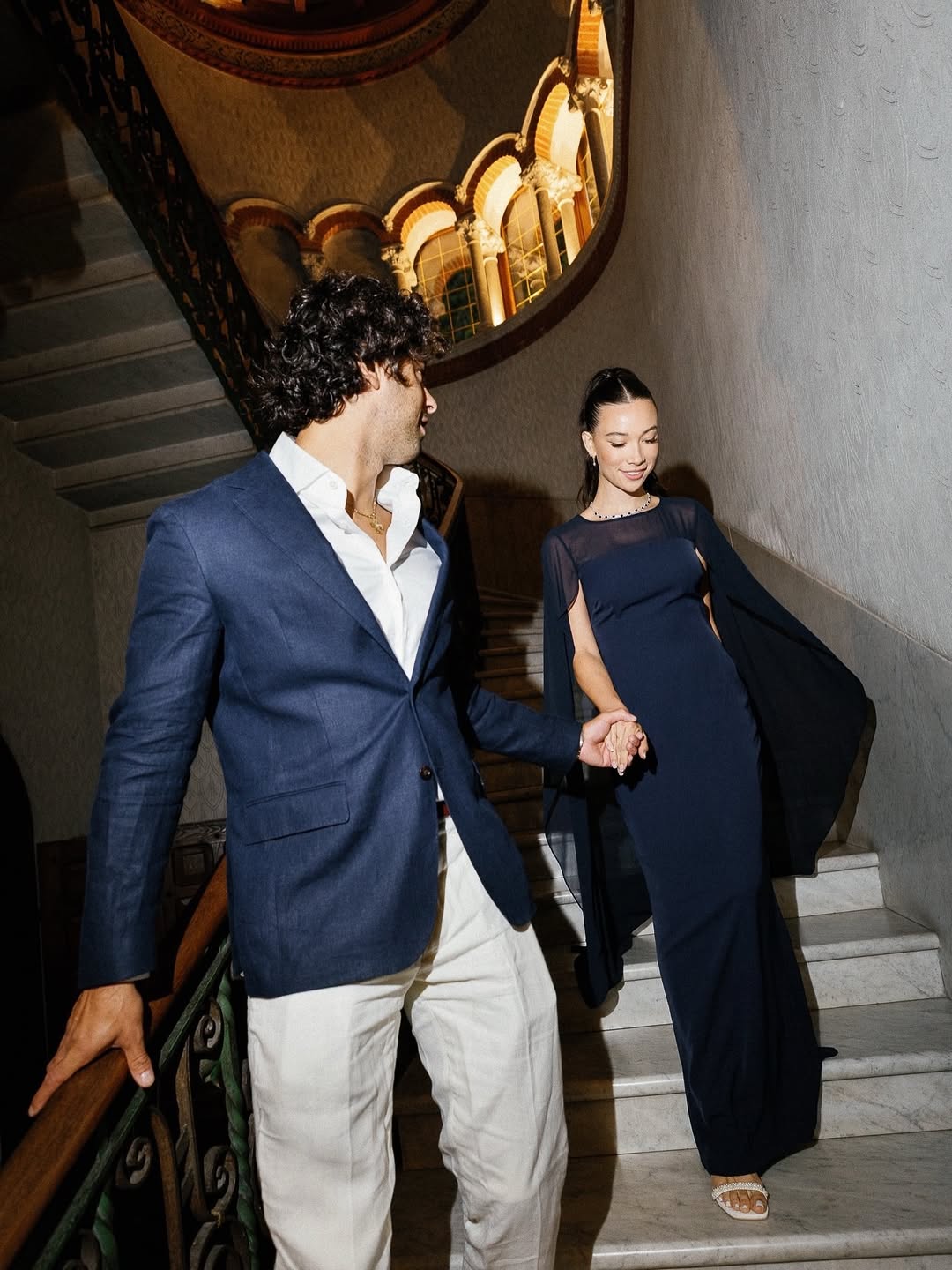 For an editorial look at yourpre-wedding photos, bring confidence and a strong sense of style. Try structured blazers, tailored trousers, or modern dresses. Urban spots like staircases, building fronts, and bridges make great backdrops. Movement matters, too. Walk with purpose, look at the camera, and use dynamic poses to create interesting shapes. These photos are meant to look like they belong in a magazine, turning your pre-wedding shoot into a creative project.