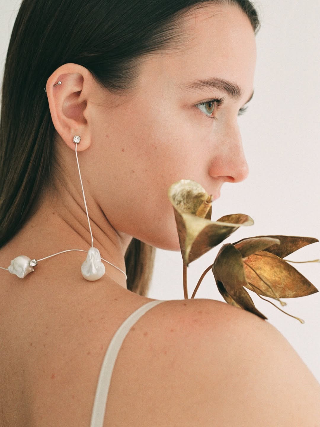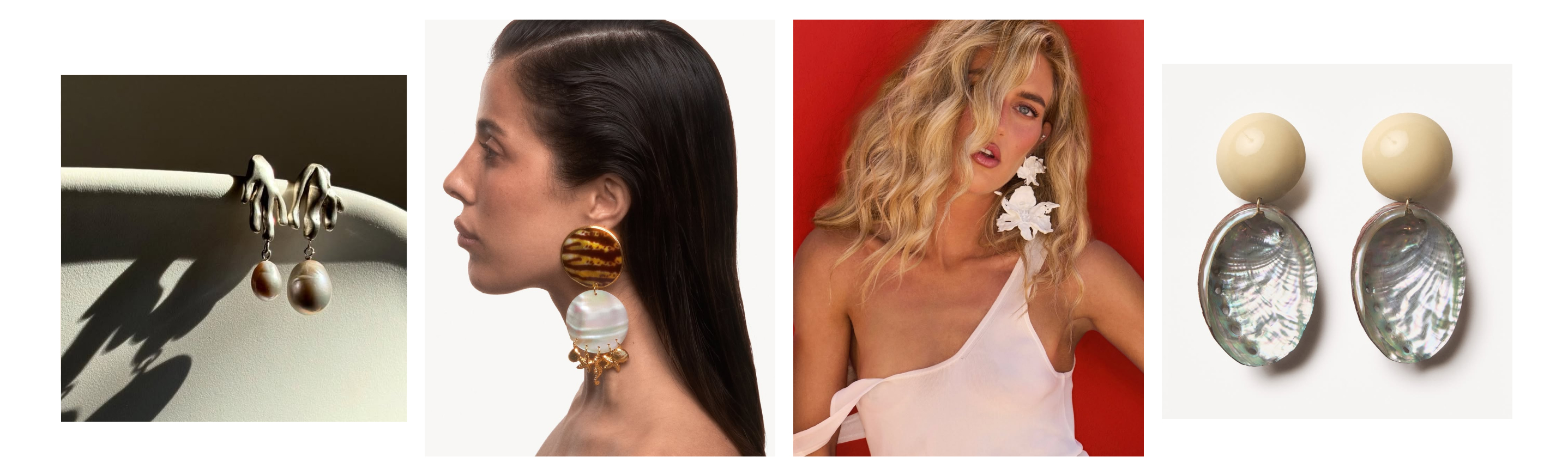 | Pearl Statement Earrings | Brides, modern classics | Soft yet sculptural | Pair with clean satin or silk gowns |