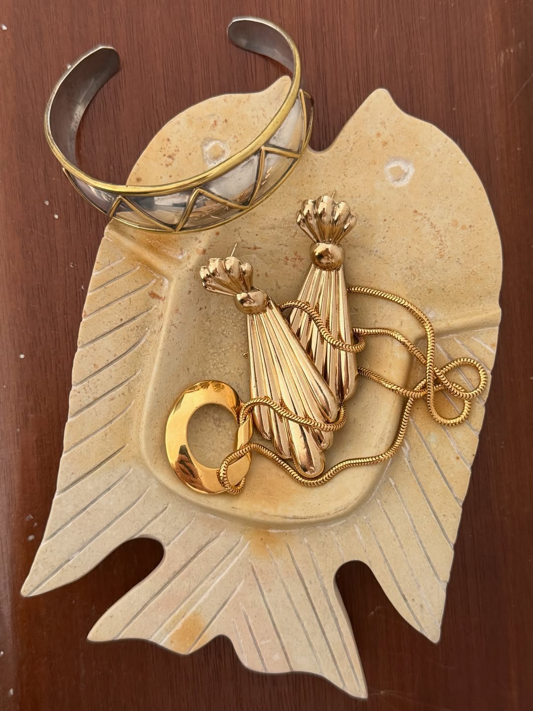 | Gold Statement Earrings | Brides & fashion-forward guests | Bold, warm, confident | Skip necklace, sleek hairstyle |