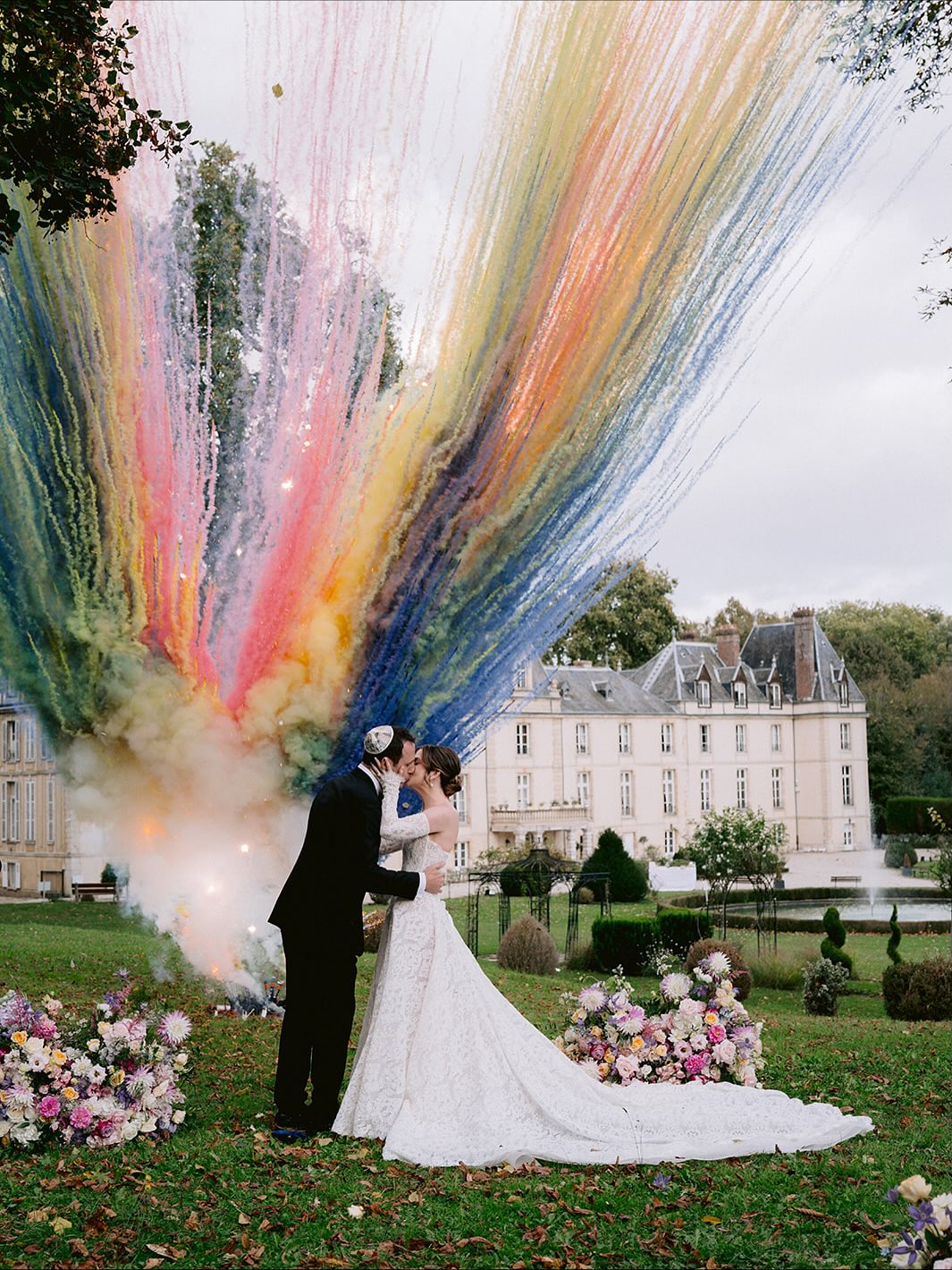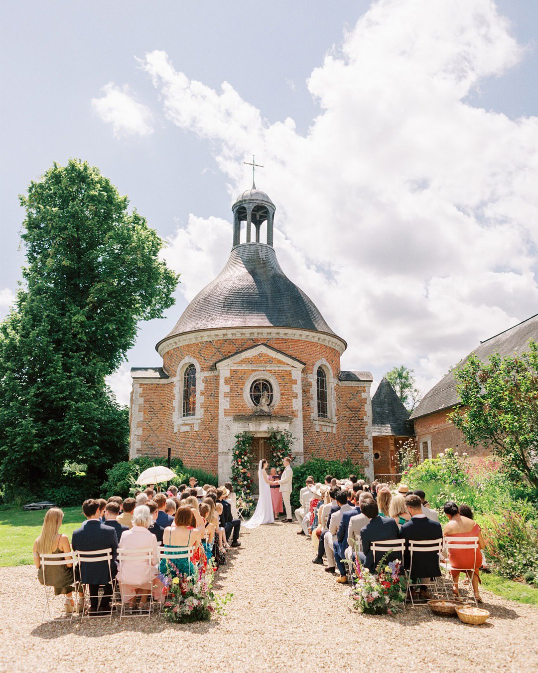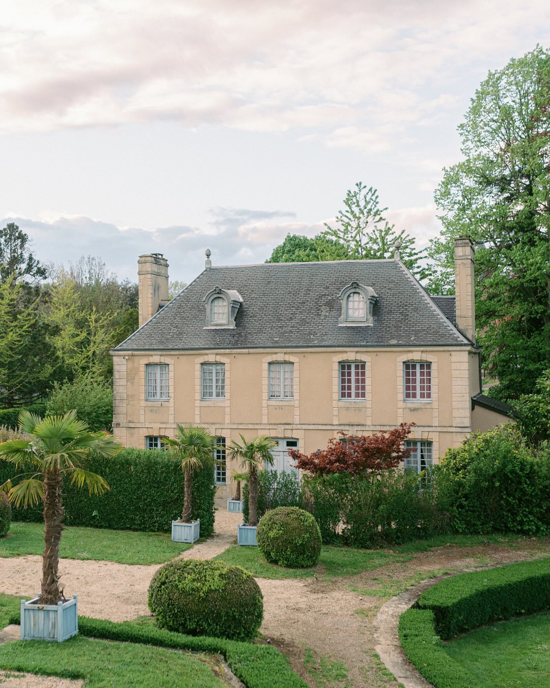 The Château d’Aveny sits perfectly between country charm and elegance. The building is balanced, the lawns are neatly trimmed and stretch to the edge of the forest, and you have complete privacy, even though it is less than two hours from Paris. This makes your wedding feel like it is happening on your own country estate, even if you are only there for the weekend. Ceremonies happen on grass so neatly cut that it looks like velvet in photos, while receptions are held at long tables in the courtyard, surrounded by stone walls covered in climbing vines and soft lighting that makes everything look romantic.