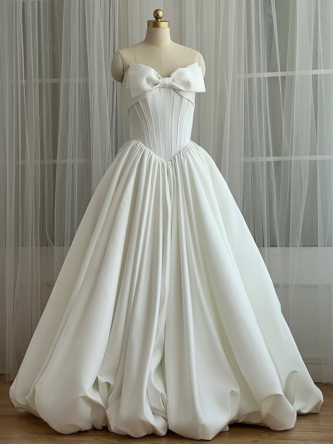 The bow veil is having its moment. Not just any bow—an oversized satin bow positioned where the veil attaches to your hair, creating a focal point that's visible from every angle. It's the detail that makes guests audibly gasp when you turn around.