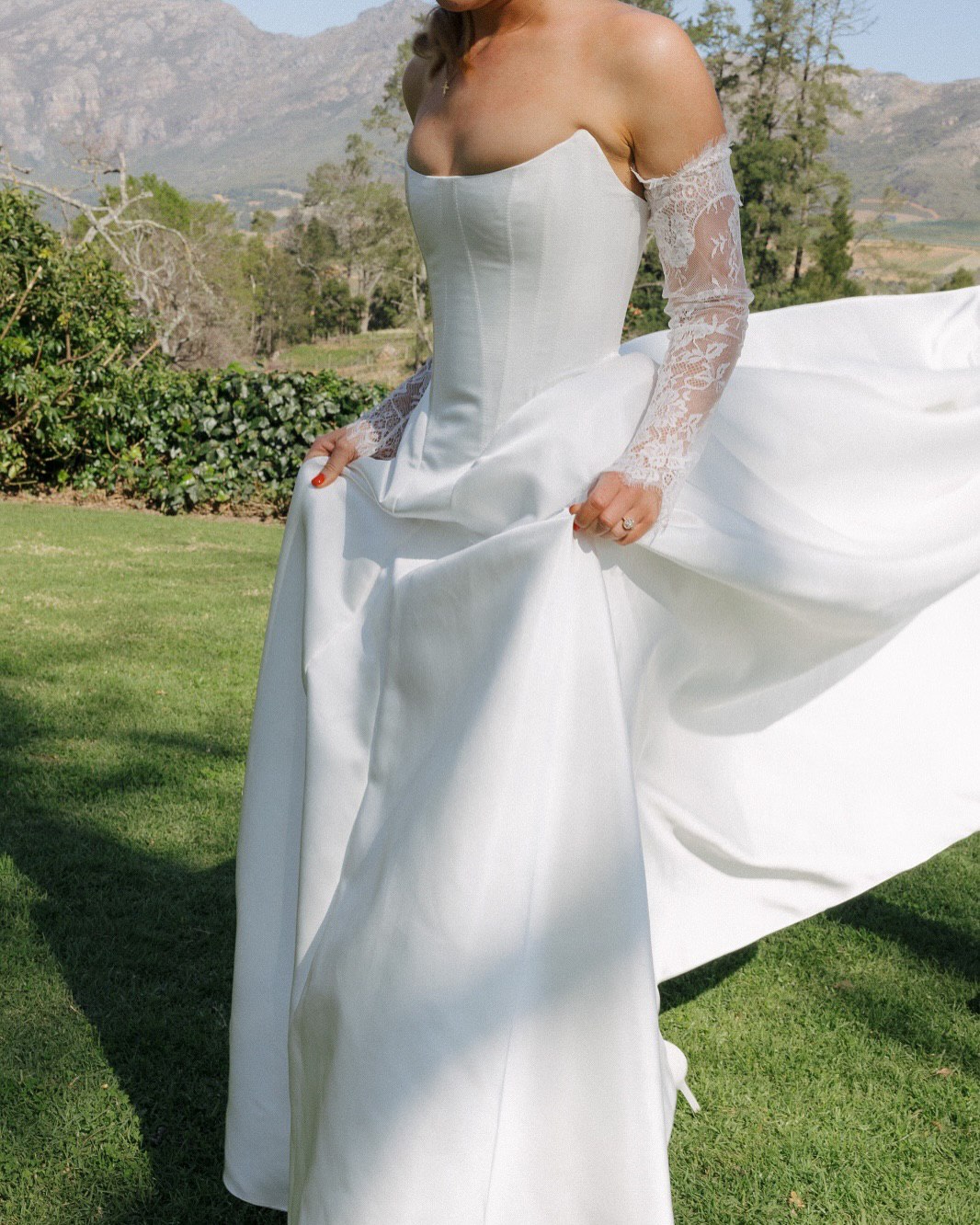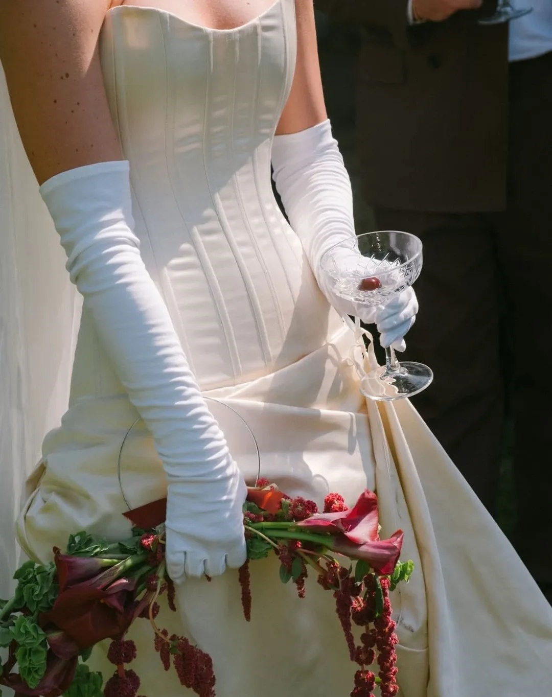 Bridal mini gloves, which end at the wrist or mid-forearm, have become a popular choice among fashion-forward brides. The pieces are perfectly suited to complement mini wedding dresses, contemporary tailoring, and two-piece bridal looks, offering a playful sophistication.
