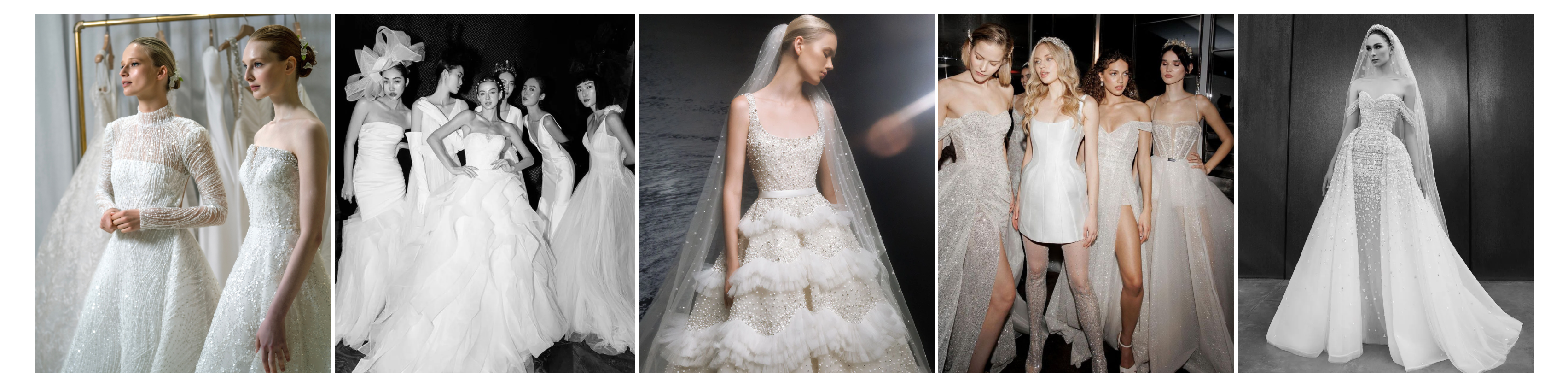 And the silhouettes? They've got princess-worthy ball gowns that practically demand their own zip code, slinky sheaths that hug your curves like they're holding onto a secret, and A-lines so perfect they'll turn geometry into your new favorite subject. Accessories? The veils are practically sentient beings, floating behind you in an ethereal trail as if summoned by some divine bridal deity. And the trains? They don’t just follow you; they glide, leaving in their wake a trail of awe-struck guests and probably a couple of dropped jaws.