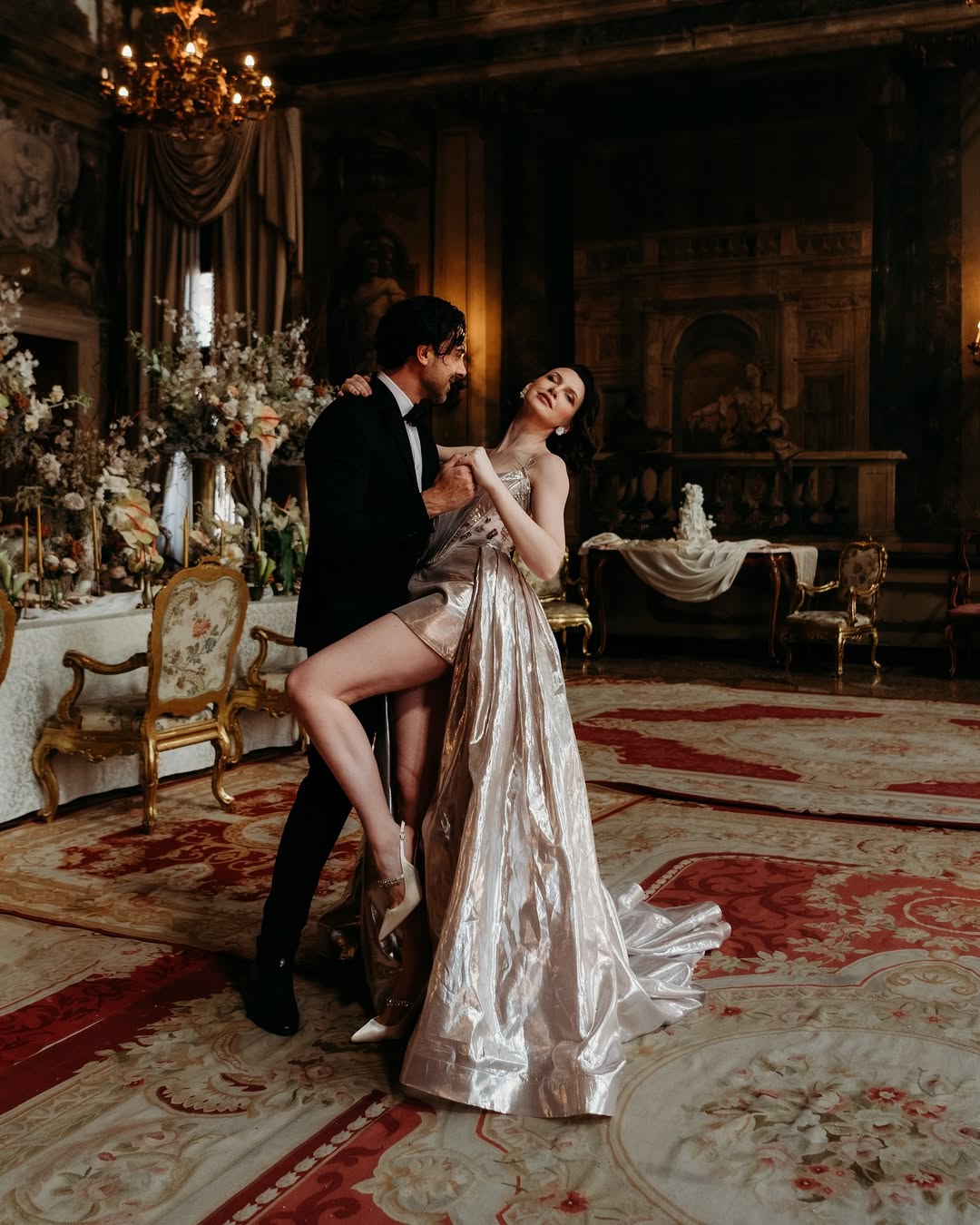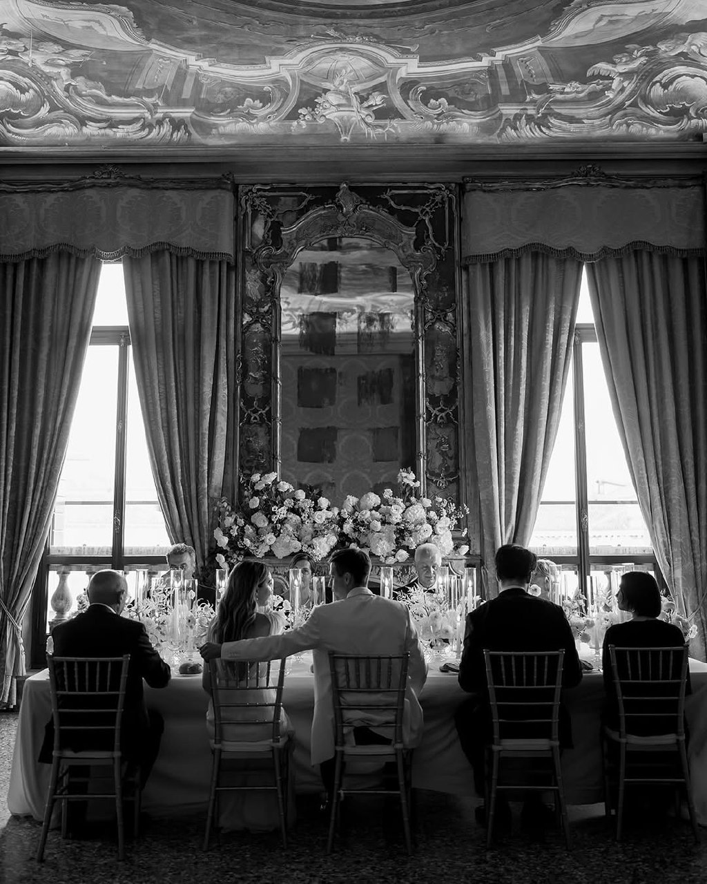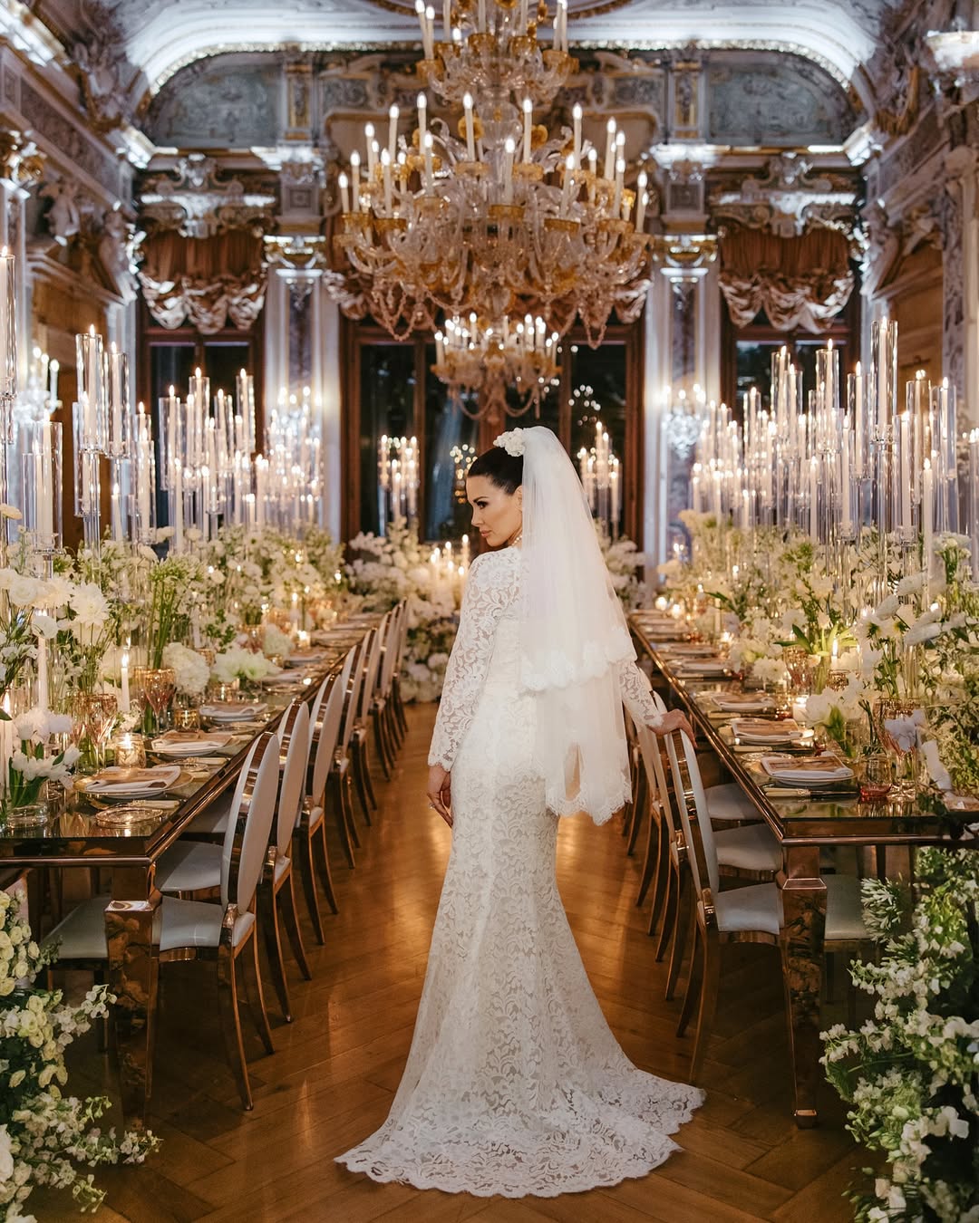 At Hotel Danieli, the terrace doesn’t just offer a view — it offers the entire lagoon in one frame. The panorama stretches from San Marco to San Giorgio Maggiore, bathing your photos in a golden halo at sunset. The color palette here is what makes it special: the soft blue of the lagoon, the coral tones of the sky, and the warm marble of the terrace blend perfectly with white gowns and champagne tones.