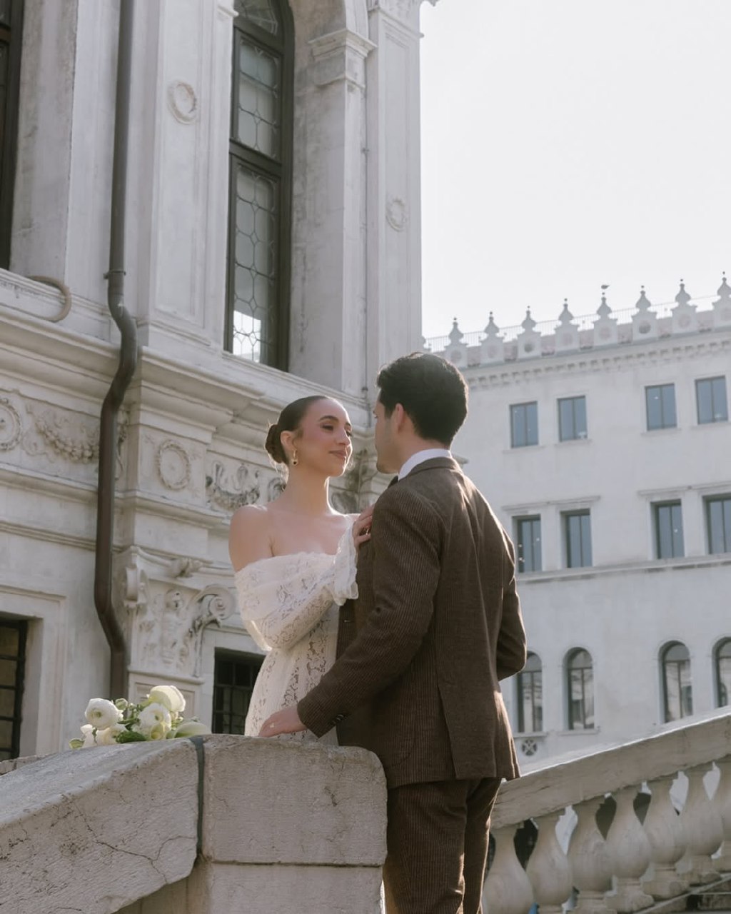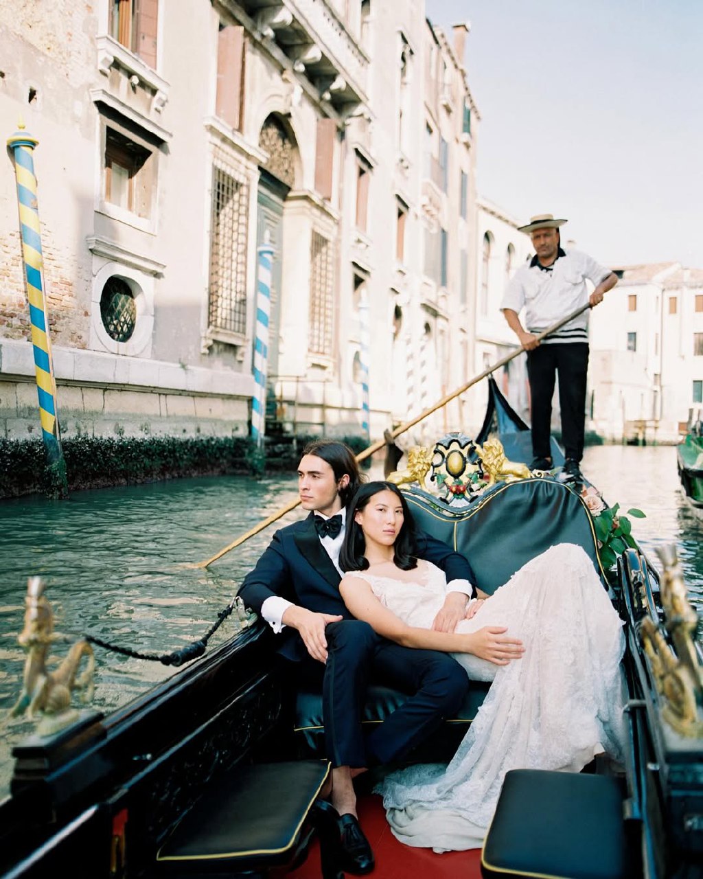 The most captivating shots happen in the late afternoon, when the sunlight hits the Grand Canal and dances through the windows. Brides standing on the balcony with the reflections below often get that “old-world cinematic glow” every photographer dreams of.