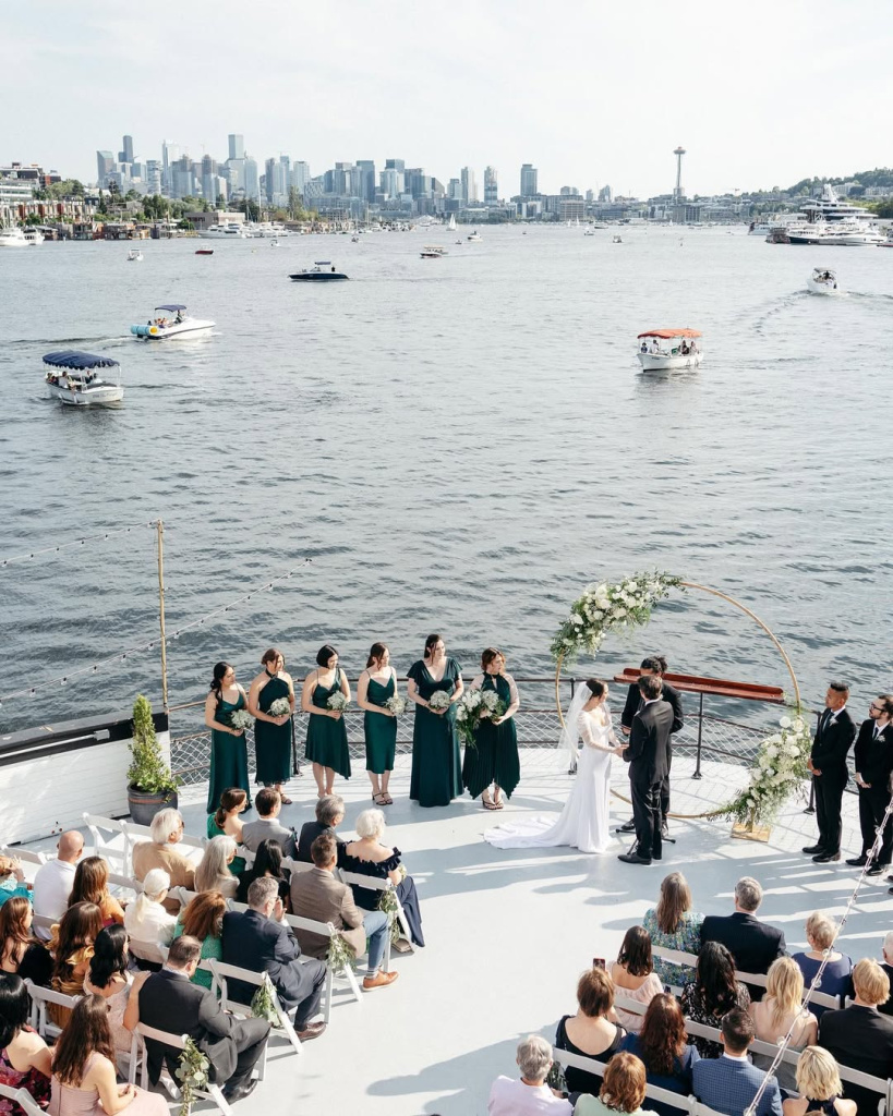 For couples seeking a unique twist on the traditional wedding venue, the MV Skansonia is a fantastic option. This beautiful vintage ferry boat, docked right on Lake Union, provides an unforgettable setting for your wedding. Imagine the charm of a vintage boat with panoramic views of the water and Seattle’s skyline—it’s a venue that’s as unique as your love story. The top wedding venue Seattle for a nautical-inspired wedding!
