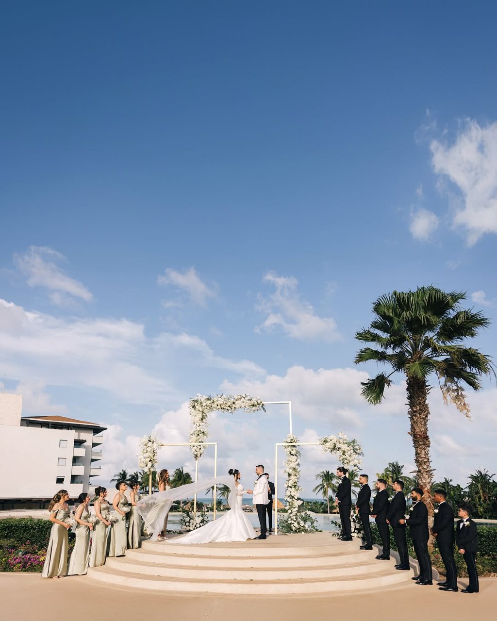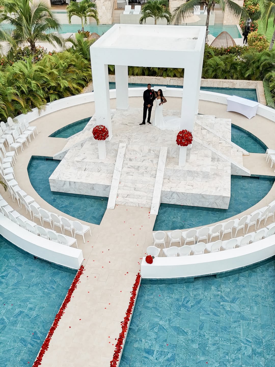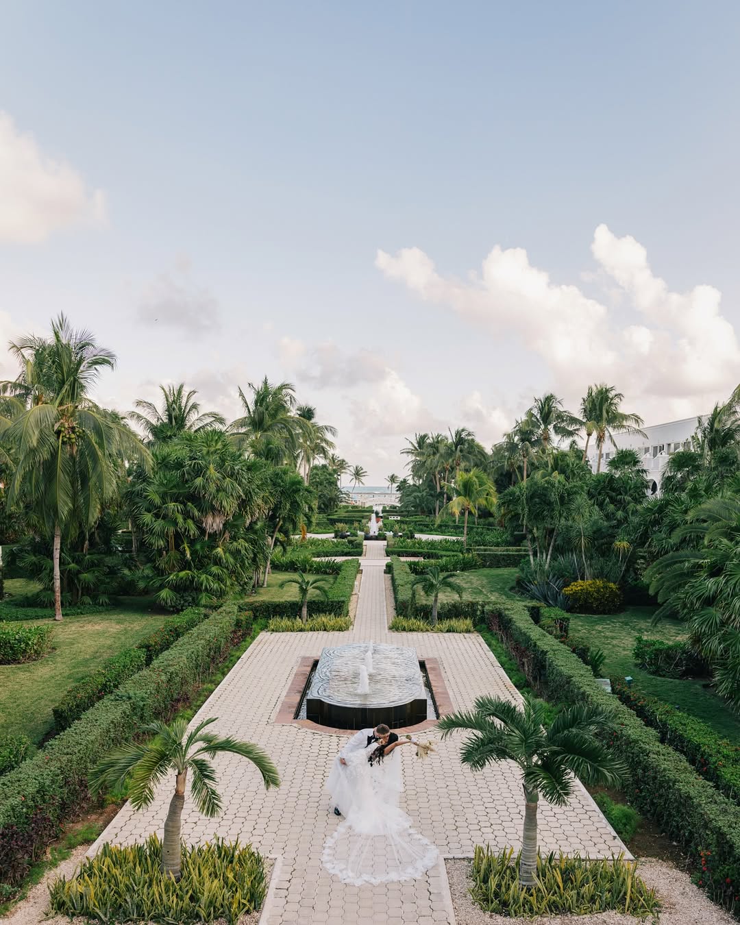 Riu Palace Peninsula stands out with bold architecture, offering a dramatic backdrop for wedding photography. The design features high terraces, striking staircases, and open outdoor spaces. These geometric elements invite photographers to capture dynamic, fashion-forward images. The staircases are especially popular, allowing photographers to capture wedding parties descending in style, adding movement and depth to each shot. The modern aesthetic appeals to couples who want a contemporary look.
