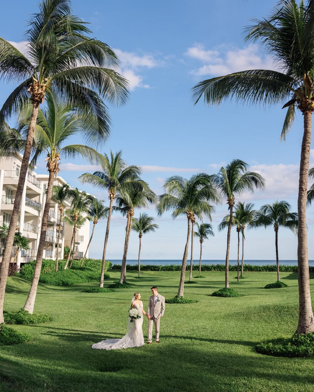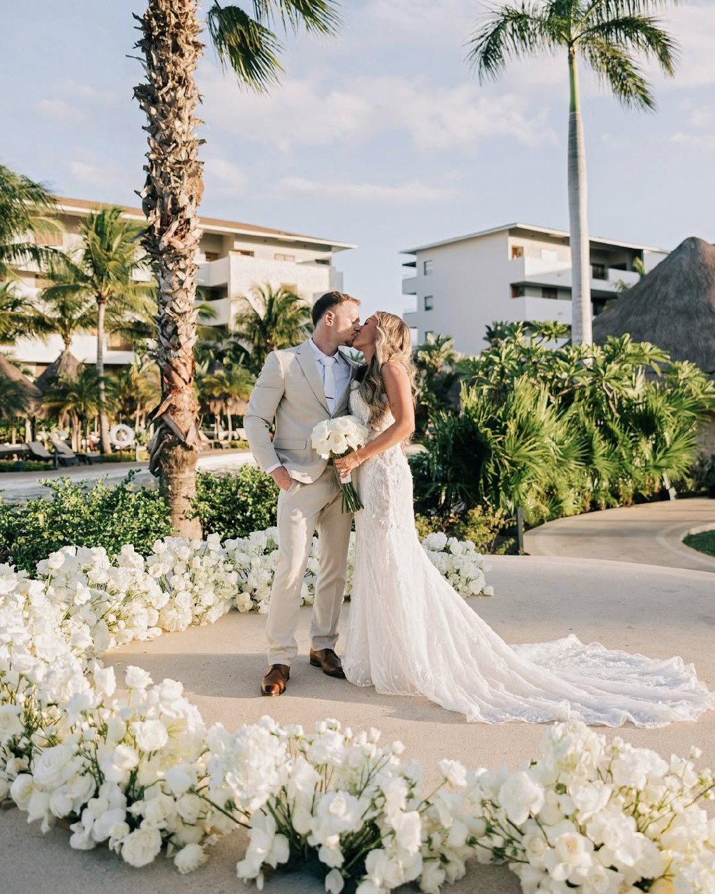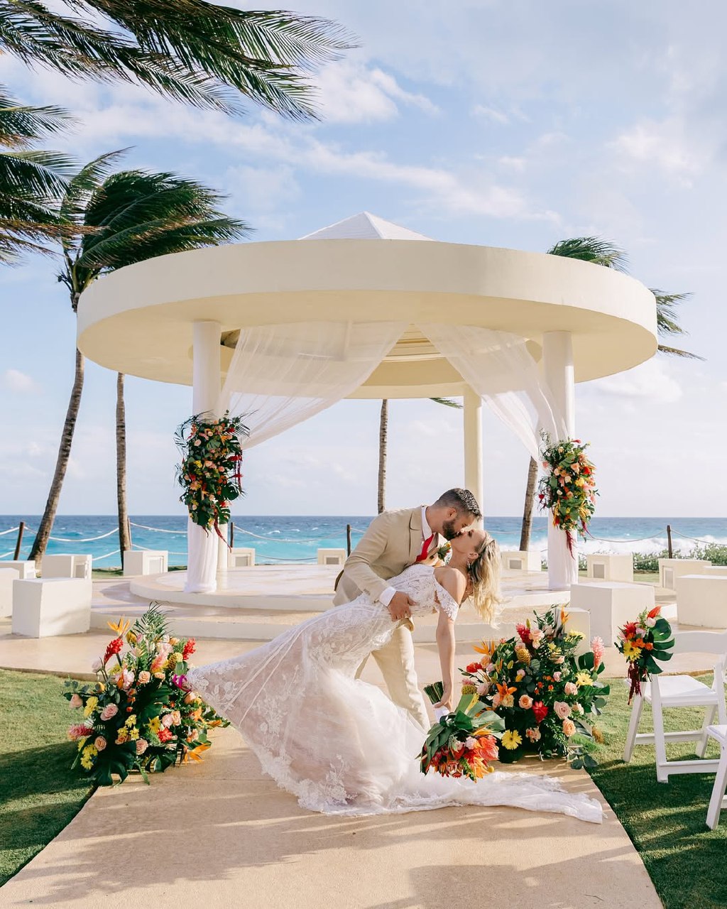 Riu Palace Peninsula stands out with bold architecture, offering a dramatic backdrop for wedding photography. The design features high terraces, striking staircases, and open outdoor spaces. These geometric elements invite photographers to capture dynamic, fashion-forward images. The staircases are especially popular, allowing photographers to capture wedding parties descending in style, adding movement and depth to each shot. The modern aesthetic appeals to couples who want a contemporary look.