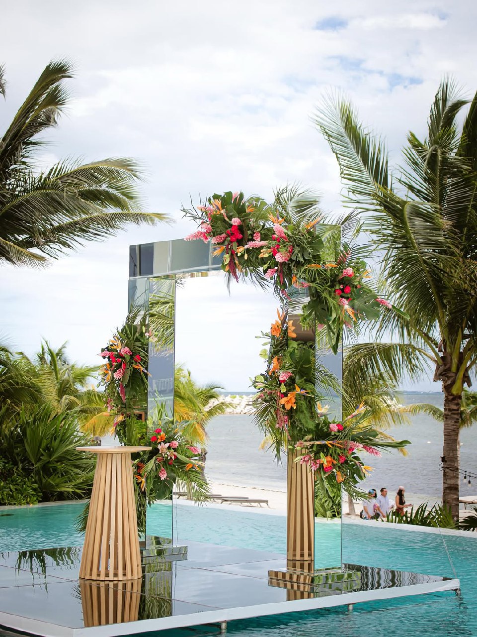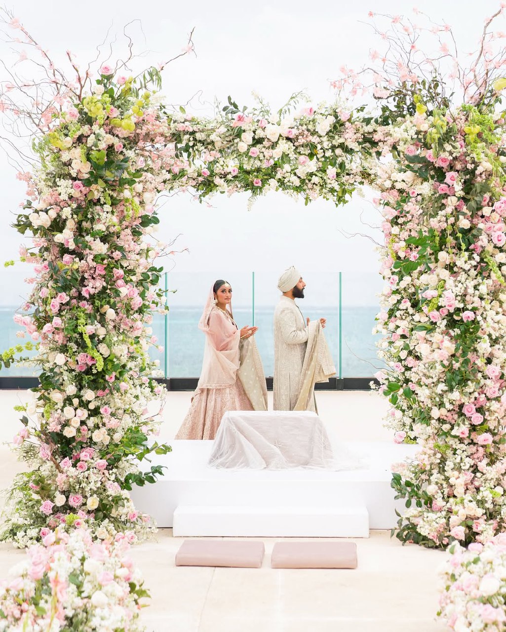 Fairmont Mayakoba sits within a pristine 240-acre nature reserve. It gives wedding photographers in Cancún a setting beyond the typical beach resort. The property boasts an intricate network of freshwater canals winding through mangrove forests, creating a mystical atmosphere. Couples can arrive at ceremonies in wooden boats, gliding through emerald waterways. This produces cinematic photos, with reflections on the water's surface. Lush vegetation adds natural depth and layers. Dappled sunlight through palm fronds creates soft, ethereal lighting. This venue is ideal for South Asian wedding photography, with multiple spaces and rich textures that enhance traditional attire.