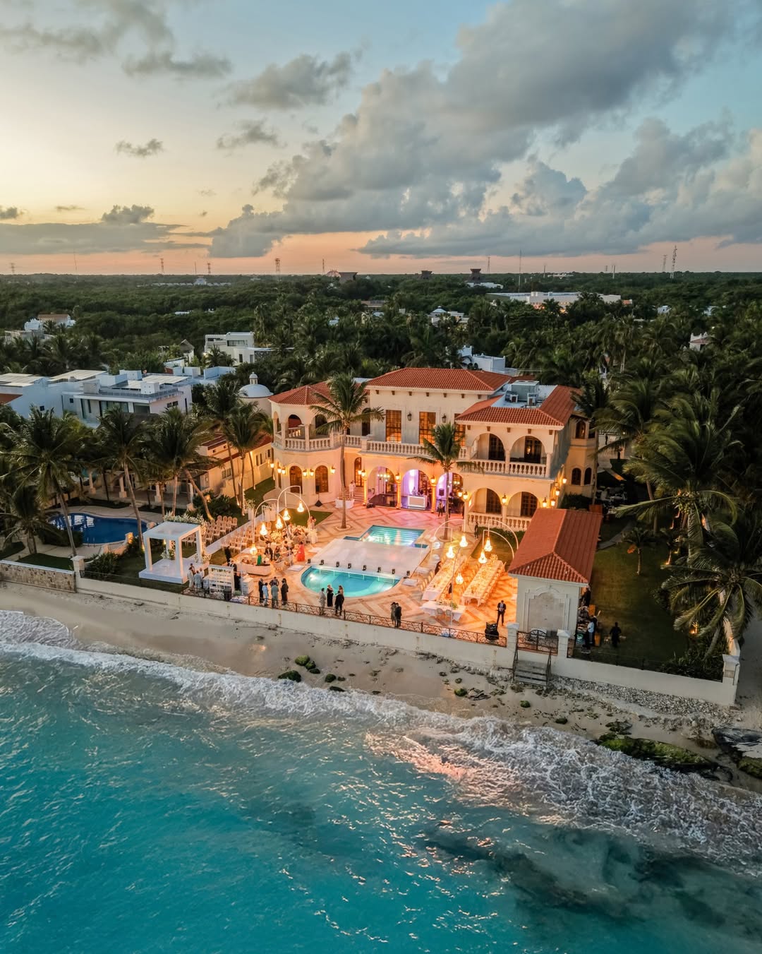 Villa La Joya sits high on a cliff overlooking the Caribbean. It defines luxury for couples seeking the best wedding venue in Cancun with a true wow factor. This private estate feels like a Mediterranean palace on the Mexican coast. Expect sweeping staircases, grand archways, and elegant terraces that descend toward the ocean. The property's architectural grandeur allows for endless editorial-style photography—imagine portraits on palatial staircases with the sea behind you. Multiple levels enable photographers to capture different perspectives, from elevated ceremony shots to intimate portraits in garden alcoves. Sunset views here are legendary among Cancun wedding photographers. The high position offers unobstructed horizons, letting the sun appear to sink into the Caribbean and bathe everything in golden-hour magic.