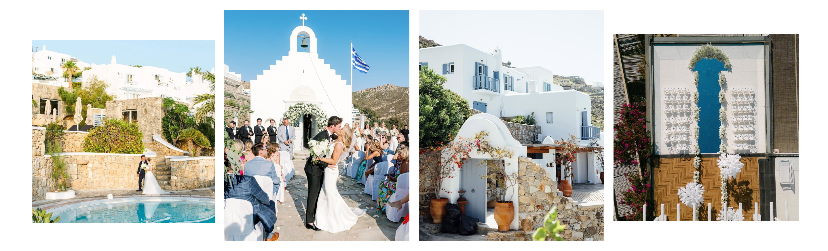 | Santa Marina | Ornos Bay | Established luxury resort | 100-250+ | Multi-day destination weddings with larger guest lists |