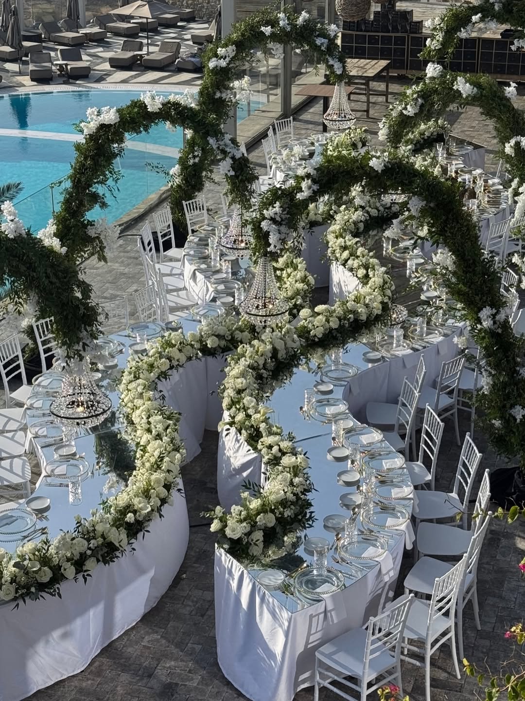 Weddings at Santa Marina are like a carefully planned song, with each area having its own use. The main ceremony spot sits high above Ornos Beach, with the bay wide and blue in front of you. It looks amazing, but it is not crowded. It feels like a natural theater where you can see everything, the sunset happens at just the right moment, and the whole place feels exciting. Receptions often move to Buddha-Bar Beach, an outdoor spot that can easily shift from a candlelit dinner to dancing under the stars, with the bay softly glowing in the moonlight and the distant villages shining in the background.