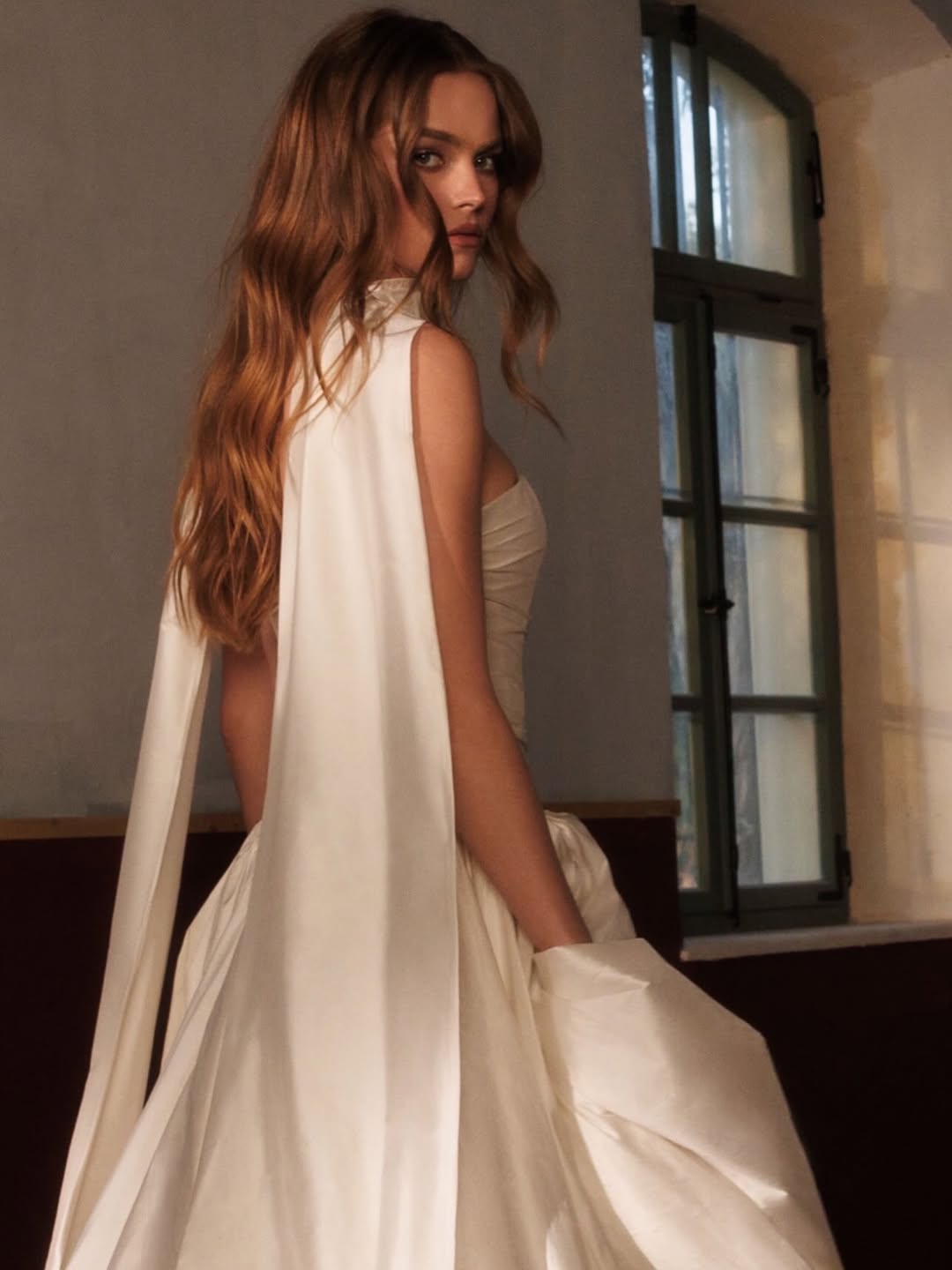 Best with: Minimalist gowns where ornate hair would be excessive, sleek silhouettes that benefit from the softness that long hair provides, or clean, modern dresses where the hair adds a romantic element that the dress lacks.