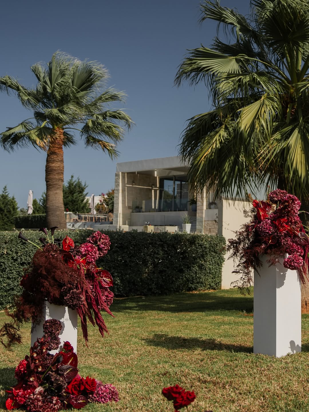 Florists work with regional flowers and Mediterranean botanicals — bougainvillea, olive branches, citrus, anemones, local wildflowers — sourced at prices that reflect the proximity of the supply chain. The best local designers work fluently across every aesthetic, and they bring an instinctive understanding of which flowers belong in this landscape.