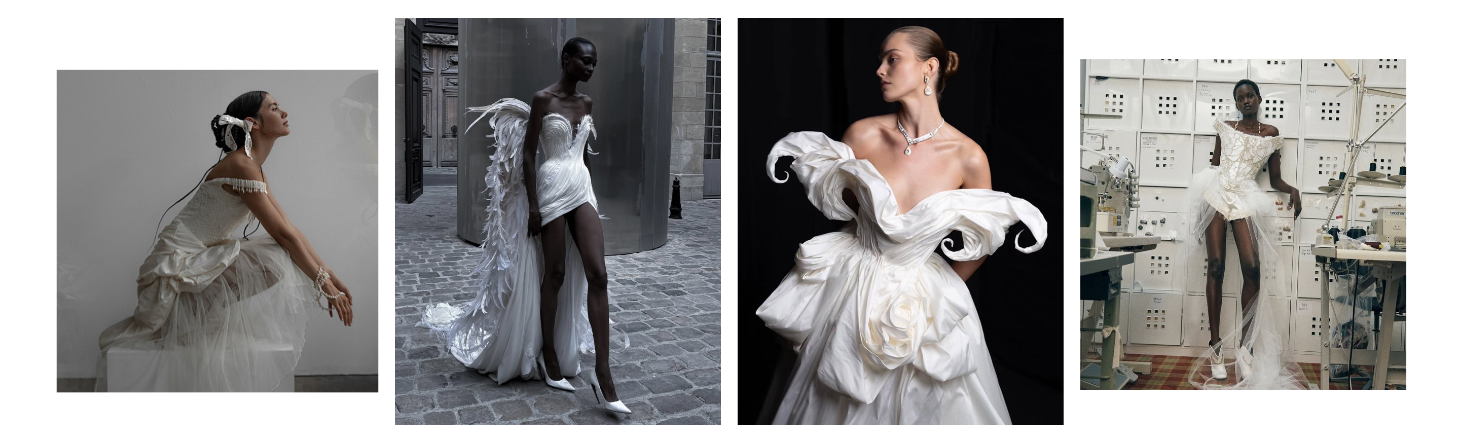 | Classic bridal energy with a contemporary twist | Timeless Elegance With a Modern Twist | Traditional silhouettes enhanced with modern details (bows, feathers, seams) create a chic, memorable balance. |