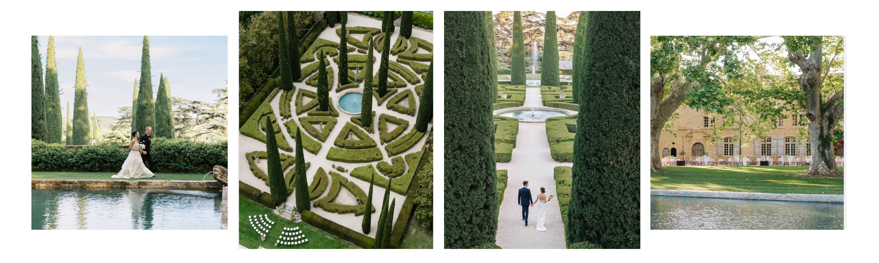 Grace & Zachary captured this feeling perfectly: "Stepping onto the grounds of Chateau de Sannes felt like entering a world suspended in time. With the gardens, the towering trees, the Provençal sun-soaked pathways, the sound of the water fountain, and birds chirping, everything felt intentional, serene, and deeply romantic. It wasn’t just a venue. It was an atmosphere, a feeling, an embrace."