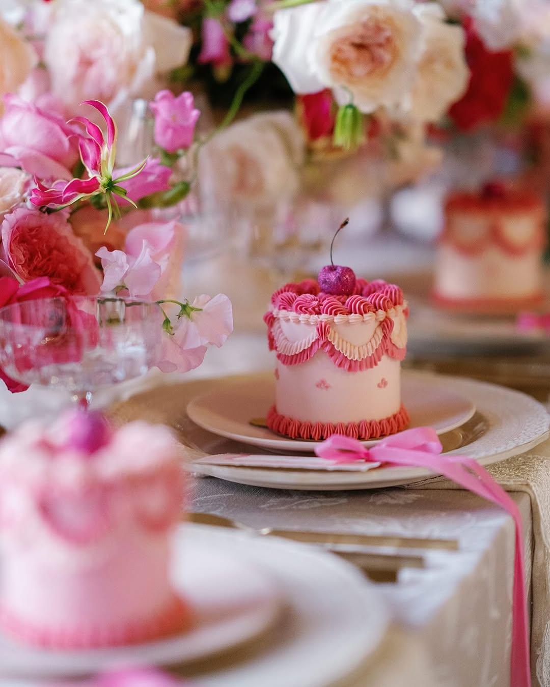 Instead of one large cake, consider small cakes for each table. This allows guests to cut and share their own mini wedding cake, creating a more intimate and interactive experience.