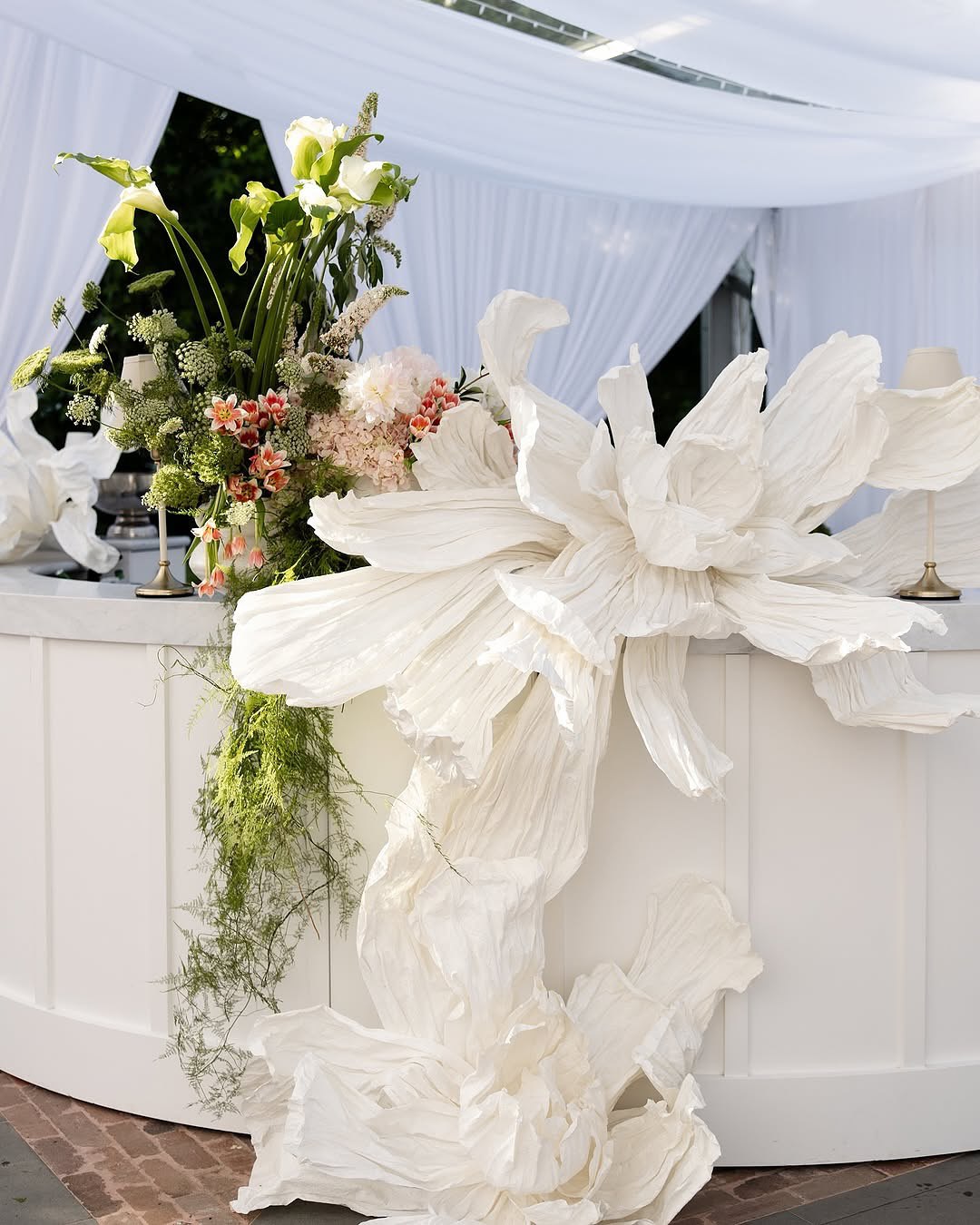 Wedding flower art has moved beyond simple decoration and now focuses on form, volume, and artistic intention instead of just traditional beauty. In sculptural floral art wedding designs, flowers are shaped and built into three-dimensional pieces inspired by modern art, fashion, and architecture. This change aligns with a broader trend toward celebrations that offer a full experience, where every detail helps create a memorable atmosphere. Custom wedding flower art can serve as a conversation piece, a photo backdrop, and a true work of art, with flowers used to create shape, shadow, movement, and meaning.