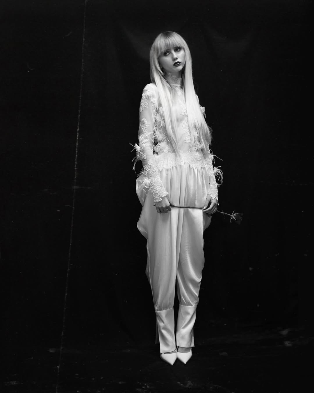 These pieces show off top-level skill in the white wedding suit. Instead of just being well-made, they act like wearable art, turning the usual pantsuit into something special. These suits stand out because of their shape, feel, and surprising details that make people look twice, not because of bright colours or patterns. For example, a blazer with see-through organza sleeves decorated with pearls. The wide-leg pants with a see-through waistband that looks like it is floating, or a jacket with big shoulders and a long back panel that trails behind you as you walk.