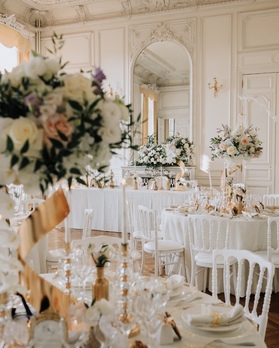 From the outset, this place is in a class of its own. When you opt for Château de Santeny, you won't be sharing the space with anyone else. You have full and exclusive use of the venue. The three elegant salons — Joséphine, Victoria, and Eugénie — become yours for the day, along with the sprawling gardens and all the features that make this château what it is: every marble fireplace, parquet floor, and moulded ceiling.