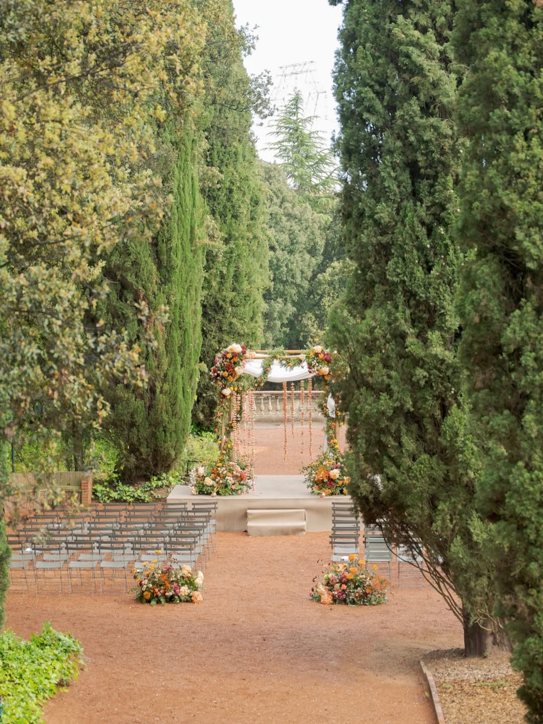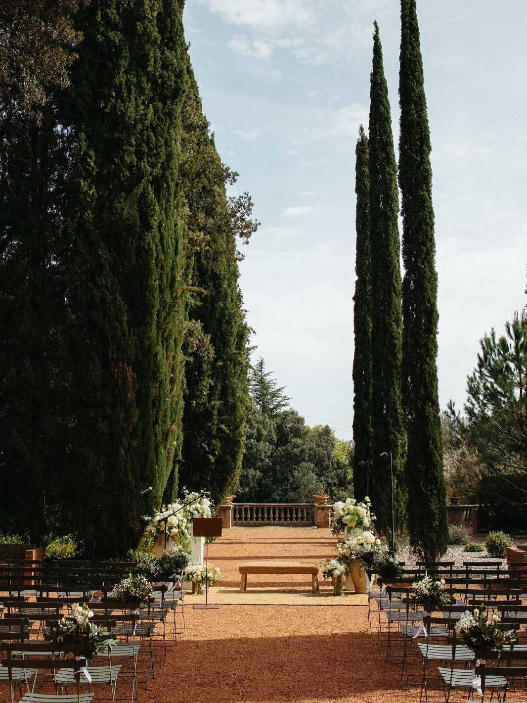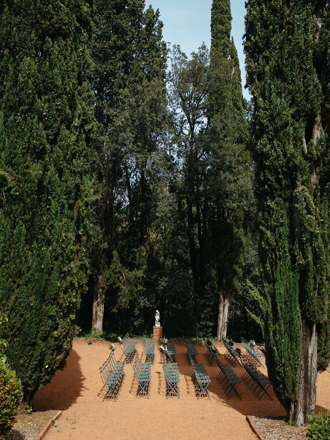 This space was chosen by Bárbara and Cristian for their candlelit dinner. As they put it: "An oasis of peace in the middle of the city. The tall cypress trees and red sand created an incredible and unusual atmosphere. That touch of distinction and originality we were looking for."