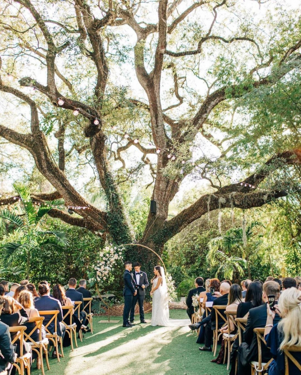 Villa Woodbine was designed by esteemed architect Walter de Garmo back in 1931. It has since been lovingly restored and is one of the last remaining estates left in the Coconut Grove region from that era. The estate is surrounded by grand oak trees and landscaped gardens, offering a charming backdrop for wedding photographs. The manicured gardens are also a perfect spot to enjoy a drink or two as you mingle with guests. The venue offers an array of options to celebrate your ceremony and reception.