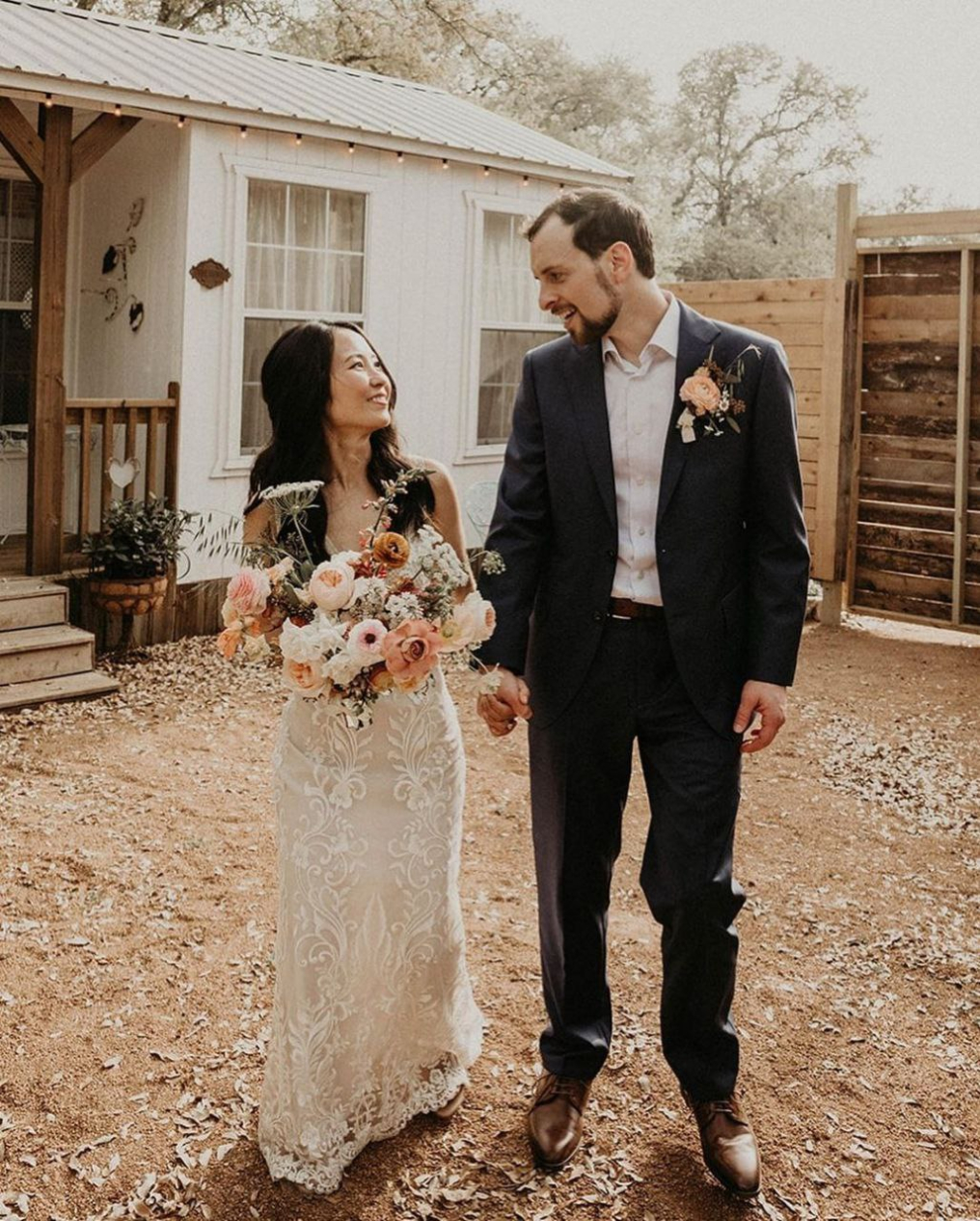 This stunning ranch wedding venue right outside of Austin (15 minutes right from downtown!) is the brainchild of artist & designer, Morgan Daily Jackson. Her cohort and partner, Sandy, has been an integral part of building this incredible wedding venue in Austin. Together, they have spent many weary days (and nights), spending literal blood, sweat, and tears to build this incredibly affordable wedding venue. One of the gorgeous highlights is the open-air dance floor, a roofless structure covered in stunning vines and flowers. Don’t worry! There is a covered arena nearby for a rain plan. No need to possibly spend last-minute funds you don’t have on a tent—you have your rain plan right there! This boutique ranch-style wedding venue is everything an outdoors lover could want.