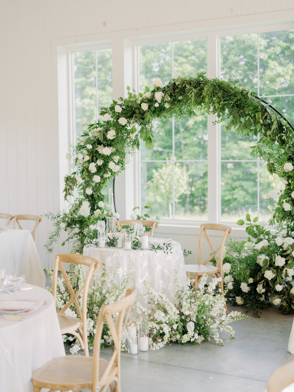 Situated on the hilltop of a ten-acre working flower farm, Magnolia Hill is a beautiful blank canvas for brides and grooms to make their own. From the covered veranda to the natural-light-filled reception hall, each space allows for outdoor celebrations that are not dependent on unpredictable Ohio weather. The venue rental includes: The Magnolia Room: a climate controlled reception hall that fits up to 200 guests The Veranda: an archway-covered outdoor space for ceremonies & cocktails The Courtyard: a manicured lawn surrounded by European hornbeams for cocktail hours or intimate events A large elegant bridal suite A comfortable grooms cottage expected to be finished in 2022 A dedicated room for vendors to meet and store supplies A prep kitchen for caterers with their own bathroom & entrance Breathtaking Ohio Sunsets Indoor/Outdoor Ceremony & Reception Options Outdoor Parking Picturesque landscaping for amazing photographs Over 200 cross back farmhouse chairs Tables of various sizes