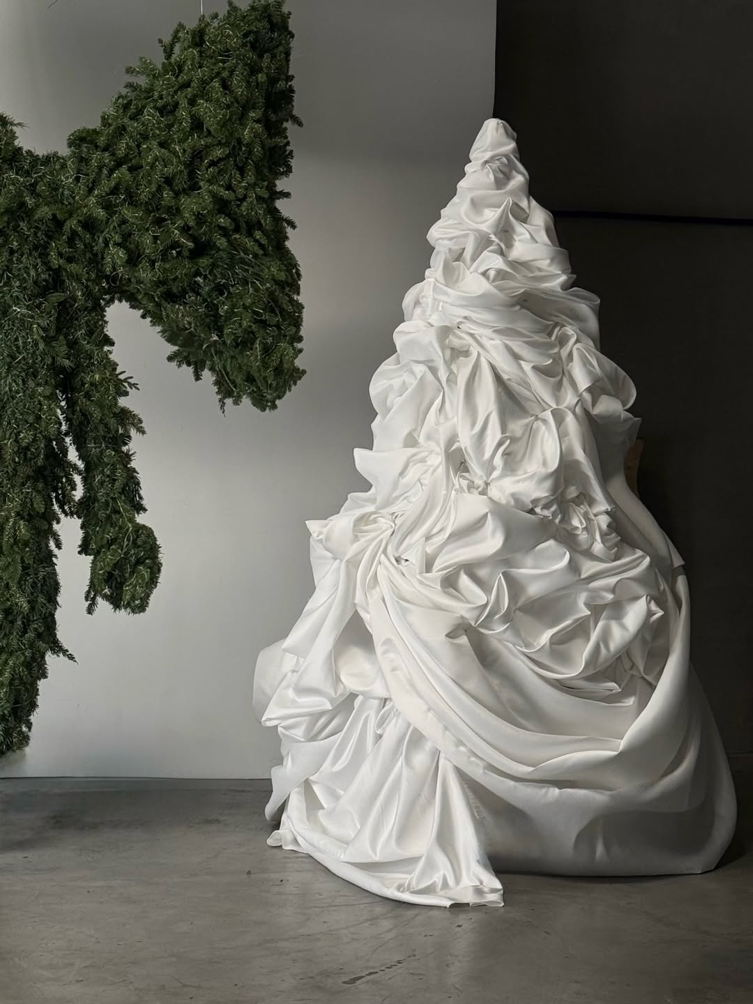 This creative approach to wedding decor is popular at fashion-forward weddings, art collaborations that feel like exhibitions, and brand events where innovation matters. Both Christmas trees and weddings share themes of celebration, tradition, and beauty, but they come from different ideas. These installations make striking photo backdrops during Christmas and can help wedding photos stand out. Placing experimental trees in a traditional Christmas tree farm creates a strong contrast, making the modern designs even more eye-catching.