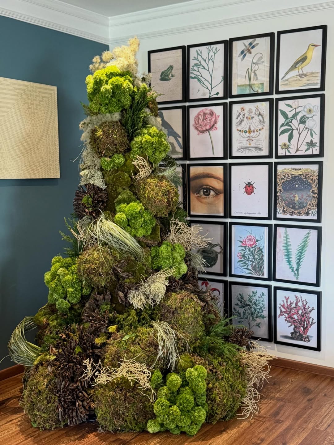 - Living moss is placed right on the branches, giving them a lush, almost ancient look.