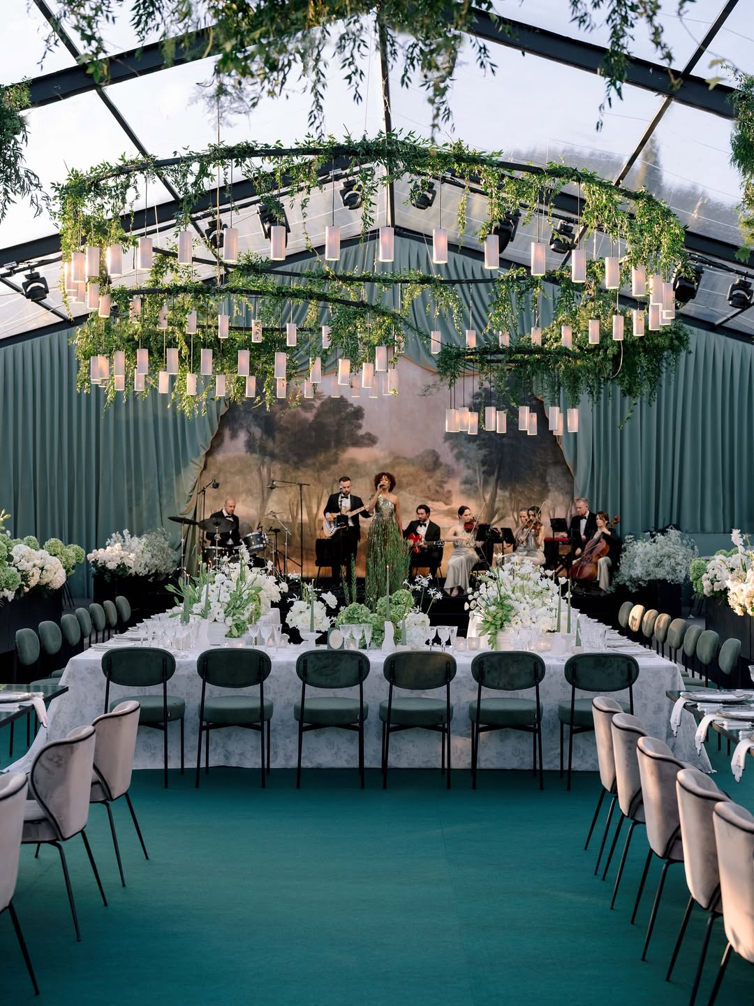 | Winter | Navy, deep purple, emerald green | Cloud Dancer, silver, dusty blue | Moody, elegant, dramatic, contrast-rich | Ballroom, historic, luxury |