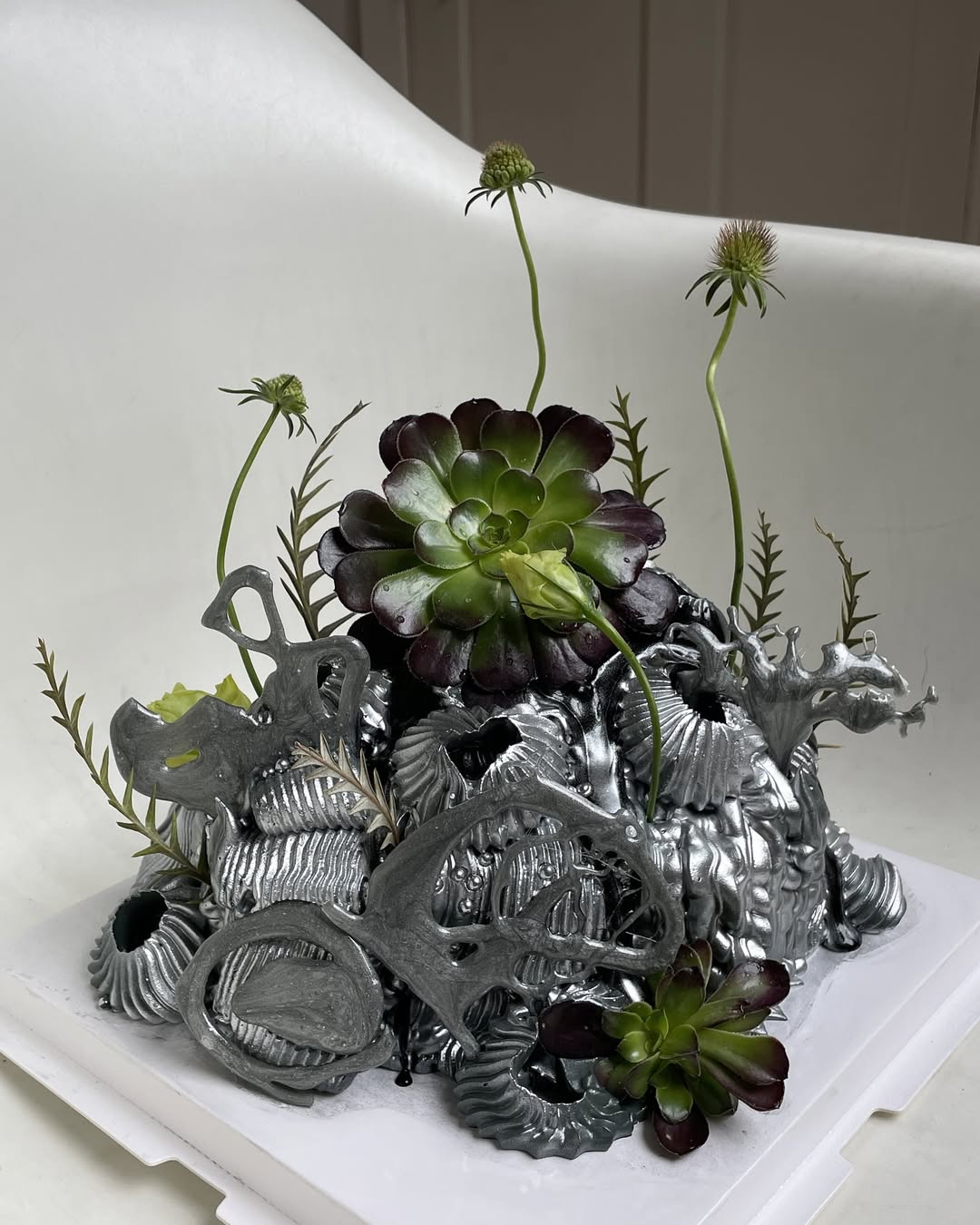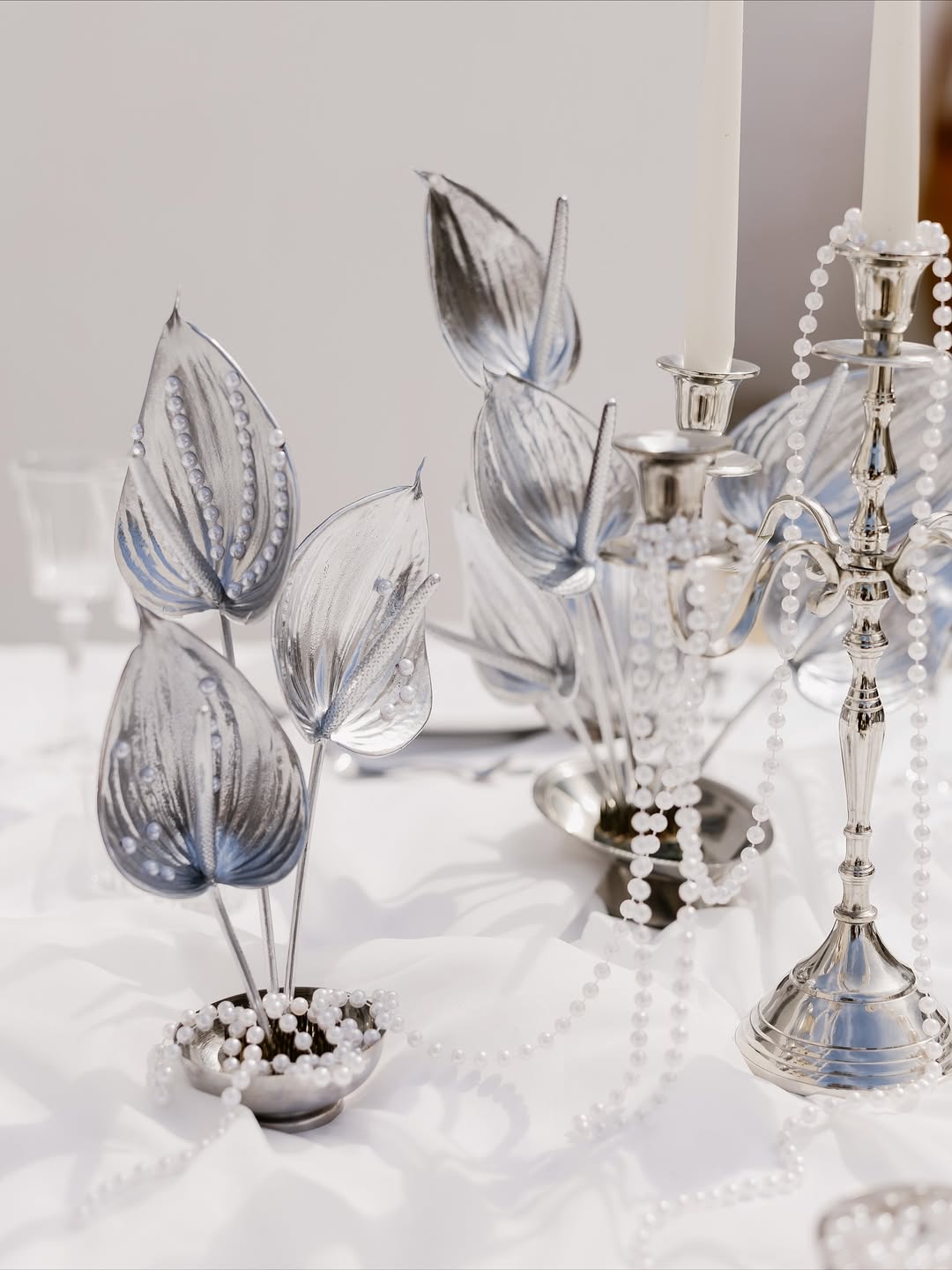 Silver is replacing gold and brass in 2026 wedding decoras a cooler, more modern metallic choice. While gold has long served as a warm symbol of luxury and tradition, silver feels quieter and more contemporary. Reflecting light softly without drawing attention, it is ideal for couples who prefer understated sophistication. Silver pairs naturally with the Cloud Dancer palette to harmonize without clashing; it photographs beautifully in both natural and artificial light, retaining its true tone without the yellow cast that gold can create.