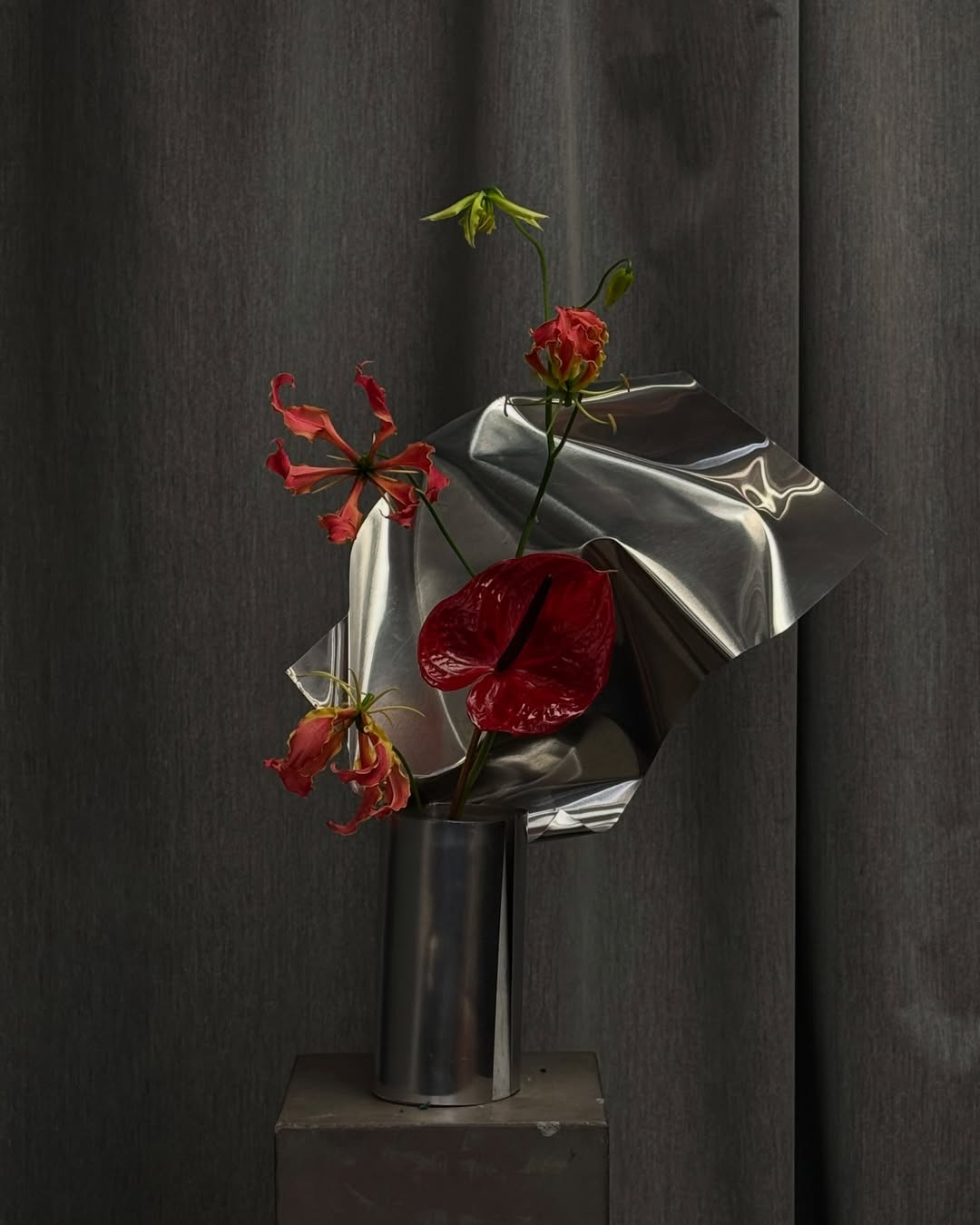 In decor, silver is used thoughtfully and sparingly. Brushed or hammered finishes add texture without adding color, like chargers under white or cream plates, matte silver flatware, and glassware with silver edges that catch candlelight. Textiles might have fine metallic threads or delicate embroidery, and small touches like silver envelope liners, wax seals, bouquet ribbons, and simple candle holders add depth. Minimalist weddings use just a little silver, while modern styles feature it in clean shapes and sculptural pieces. Editorial concepts for 2026 might include bold choices like large silver vessels or soft metallic backdrops. The finish sets the mood: brushed for a soft look, polished for a formal feel, and textured for a modern touch.