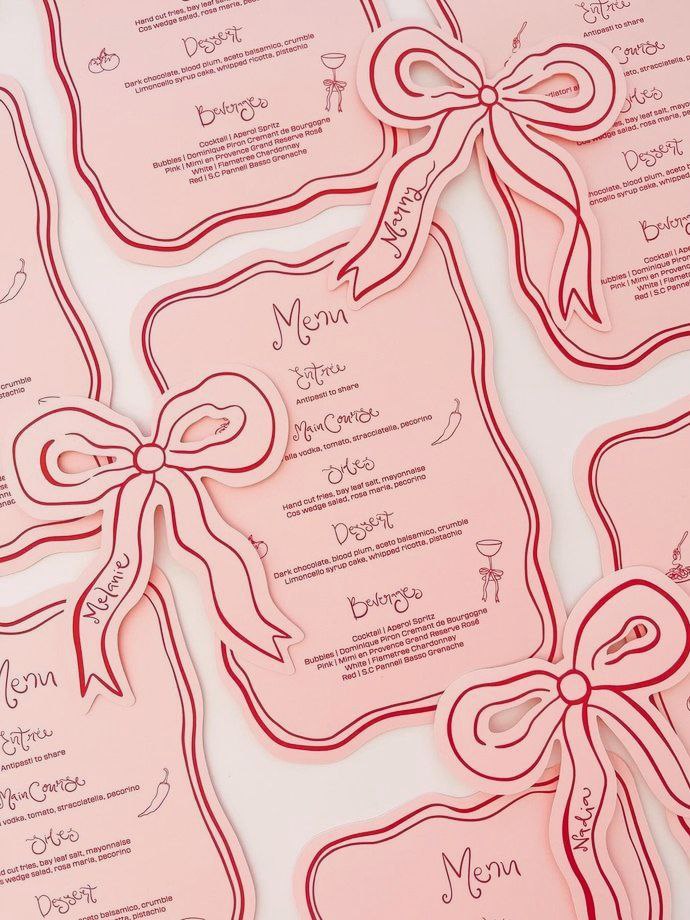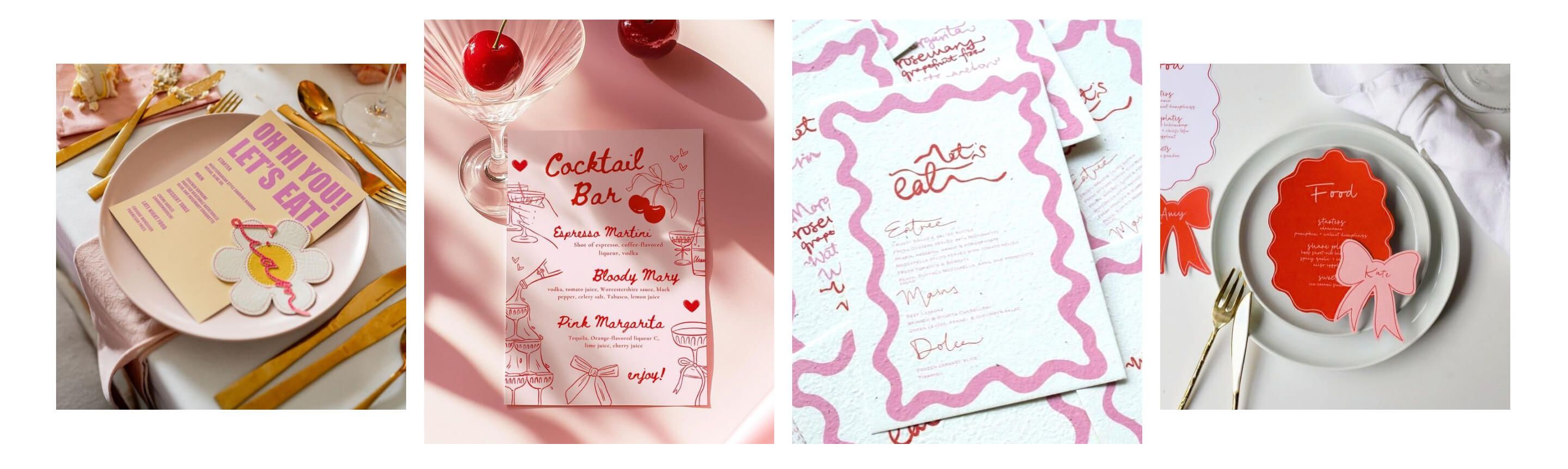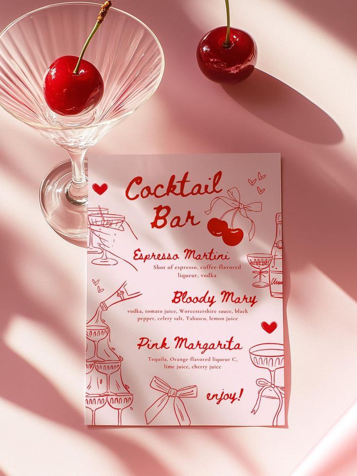 For brides who love romance with a playful twist, soft pink or red types of menu cards create the perfect balance of sweetness and sophistication. These charming designs feature whimsical cherry motifs and gentle color palettes that feel fresh and feminine without being overly saccharine. Consider incorporating personal touches like illustrations of your favorite flowers, meaningful symbols from your relationship, or even playful descriptions of dishes that reflect your sense of humor as a couple.