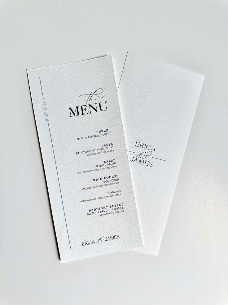 Sometimes the most stunning choice is the most simple one. Clean, minimalist menu cards with crisp typography and plenty of white space never go out of style. These classics let your carefully curated menu shine while maintaining an air of sophisticated restraint. You can't go wrong with this approach – it's elegant, readable, and photographs beautifully against any table setting.