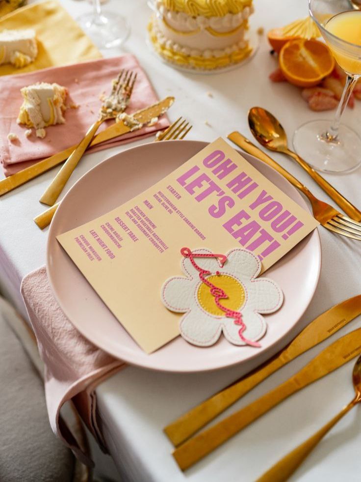 Nothing says "feel-good celebration" like sunny yellow menu cards with playful typography and cheerful daisy accents. These warm, inviting designs create an atmosphere of pure joy that perfectly captures the happiness of your special day. The retro-inspired fonts and bright colors work beautifully for spring and summer weddings, garden parties, or any celebration where you want your guests to smile the moment they sit down.