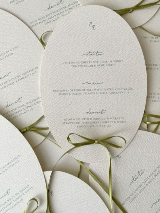 Bringing the outdoors in has never looked more chic. Menu cards adorned with sage green ribbons and placed alongside fresh white calla lilies create an organic, romantic atmosphere that feels effortlessly elegant. This unique menu card idea works beautifully for garden parties, outdoor ceremonies, or any celebration where you want to celebrate the beauty of simplicity. Your eco-conscious guests will absolutely adore this thoughtful touch.