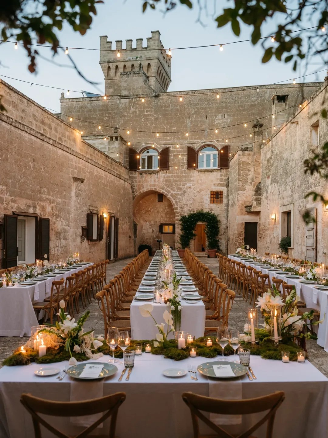 The magic of an Italian courtyard wedding is found in its devotion to atmosphere rather than formality. This is not just a banquet outdoors, but an intimate dinner party that grows in size without losing its soul. Guests are swept into an enchanting evening where delicious food, stunning surroundings, and heartfelt connection matter far more than strict schedules or staged moments.