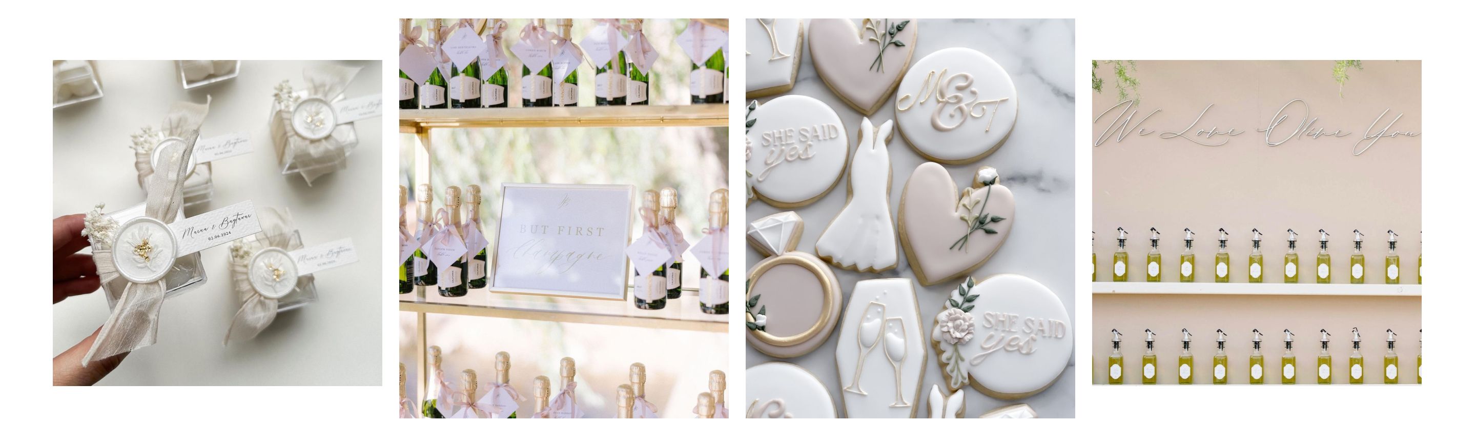 - Custom Cookie Sets: Delicious cookies in shapes like hearts or rings, frosted with the date or initials.