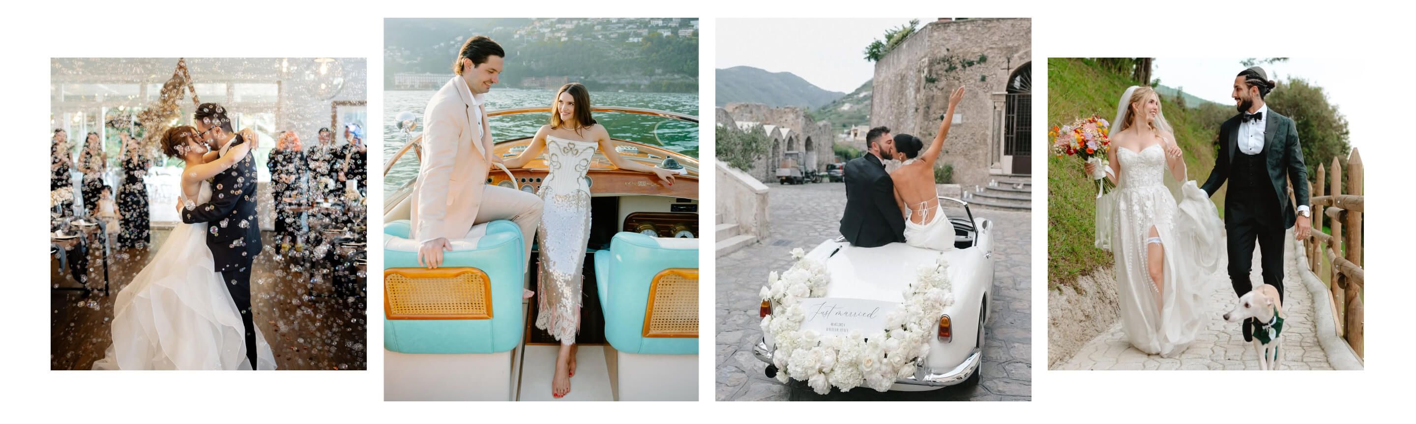 Leaving your venue in a vintage car is pure old-school romance and creates a glamorous vibe. Think a classic Rolls-Royce, Bentley, or even a retro convertible with flowers draped across the trunk. Ask your photographer to capture you both looking back and waving through the back window — it’s a timeless shot. Add a playful twist by tying cans or ribbons to the bumper. Bonus: many classic car companies offer a driver so you can relax and sip champagne as you ride away.