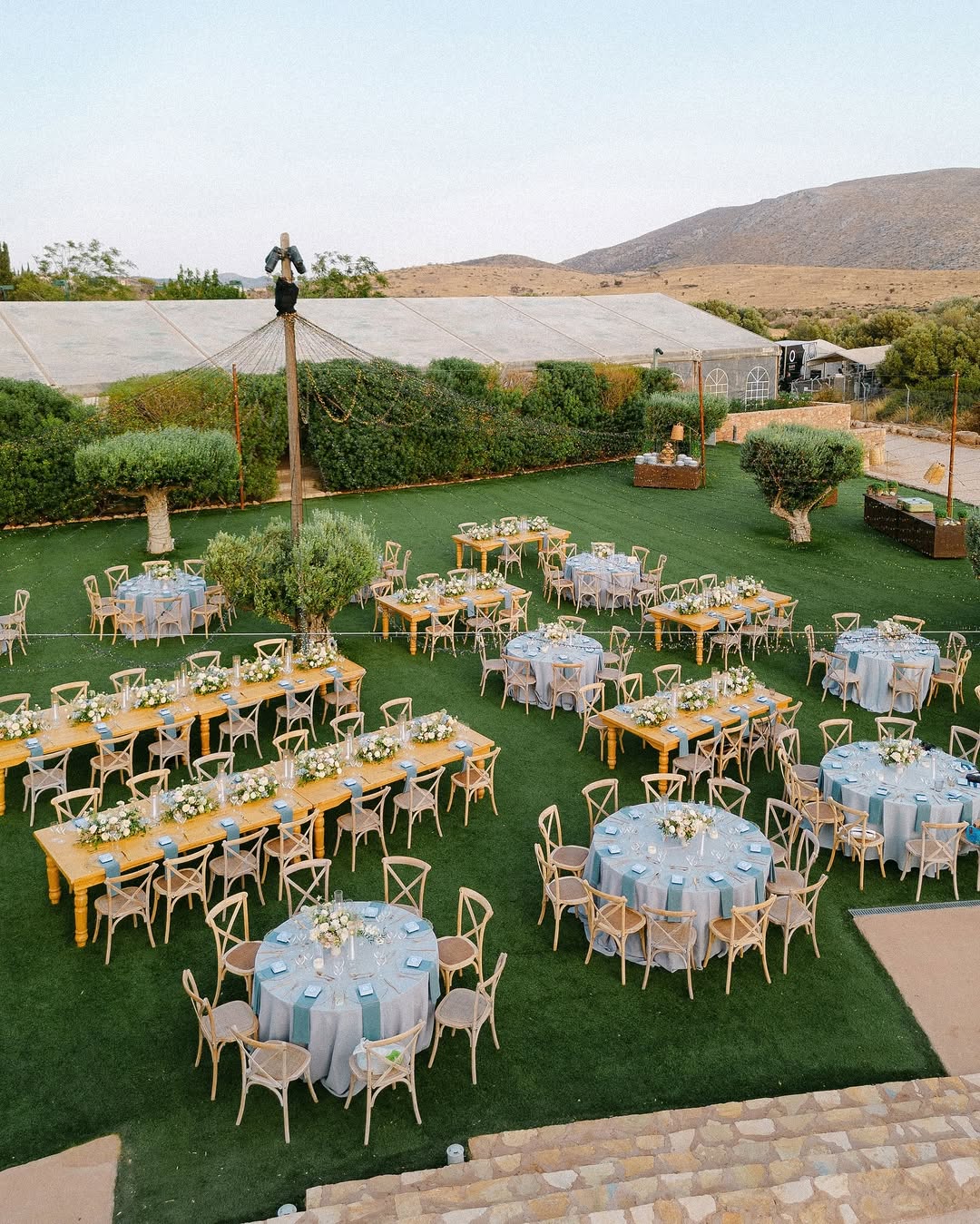 This is where dreams take shape under the stars. Centuries-old olive trees and evergreen lawn create a canvas for receptions from 20 to 700 guests. The lighting possibilities are endless, and each celebration here feels completely unique.