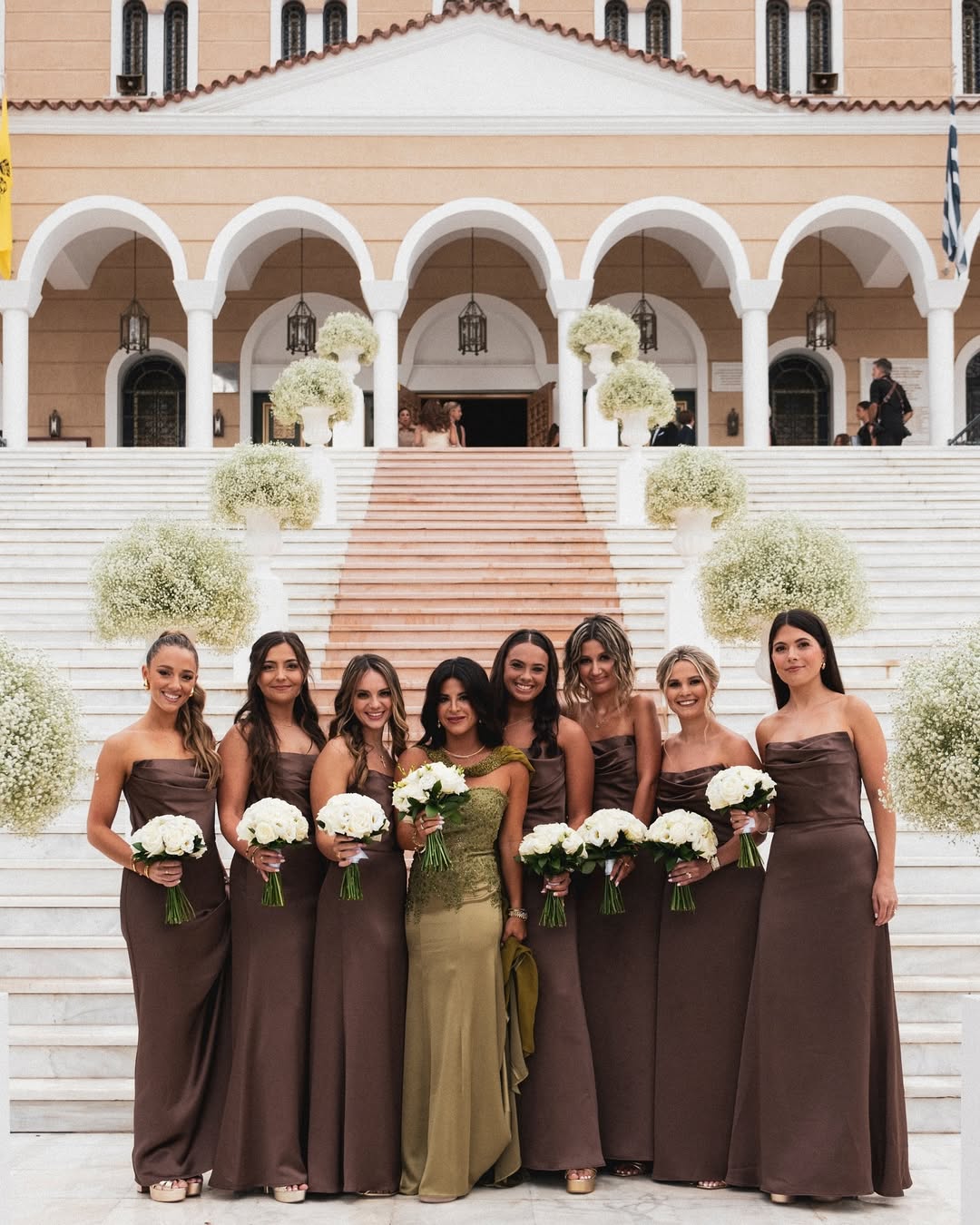 Alec and Isabella Manfre summed up their entire wedding weekend: "The entire weekend was filled with so much love- from a rehearsal dinner at Zonars with beautiful views of the Acropolis, to a welcome party on the beach at Coastal at Mavro Lithari, to stunning views at Pyrgos Melissourgou, the weekend was incredible!"