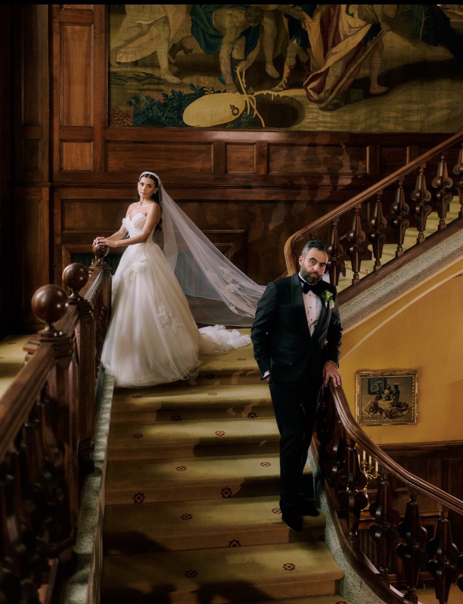 From the moment you step inside, you are welcomed by water, trees and a peaceful atmosphere. Lea and Azmi beautifully described the entire estate: “The mix of nature, architecture, the artworks on the ceilings, and the elegant interiors… every small detail mattered to us. From the moment we first visited, it completely took our breath away.”
