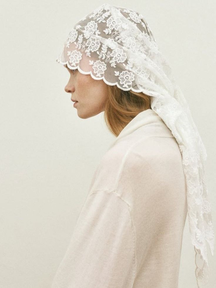 Oh honey, if you want to channel old-world romance with a modern twist, lace scarves are what you need! These delicate beauties give you that dreamy, ethereal look without the fuss of a traditional veil. You can wear them draped over your hair like a classic Hollywood starlet, or tie them under your chin for that vintage European countryside vibe.