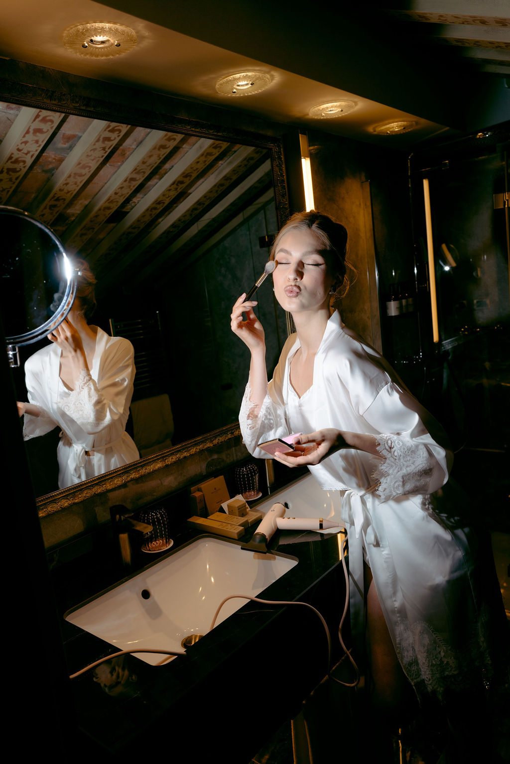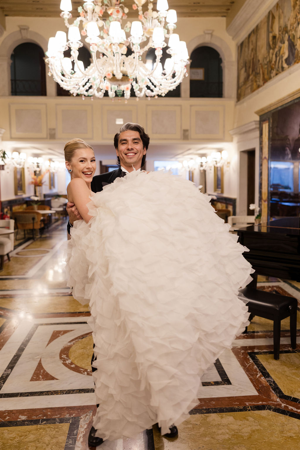 Venice, beyond the crowd, is a different city entirely. In Cannaregio and Misericordia, locals still live their lives unhurried, morning light hits ancient stone differently, and you can actually hear yourself think. This is where photographer Daniela Katia and planner Wedding in Cortina set their latest editorial—a fashion-forward elopement that unfolds from late afternoon into evening at NH Collection Venezia Grand Hotel Palazzo dei Dogi.