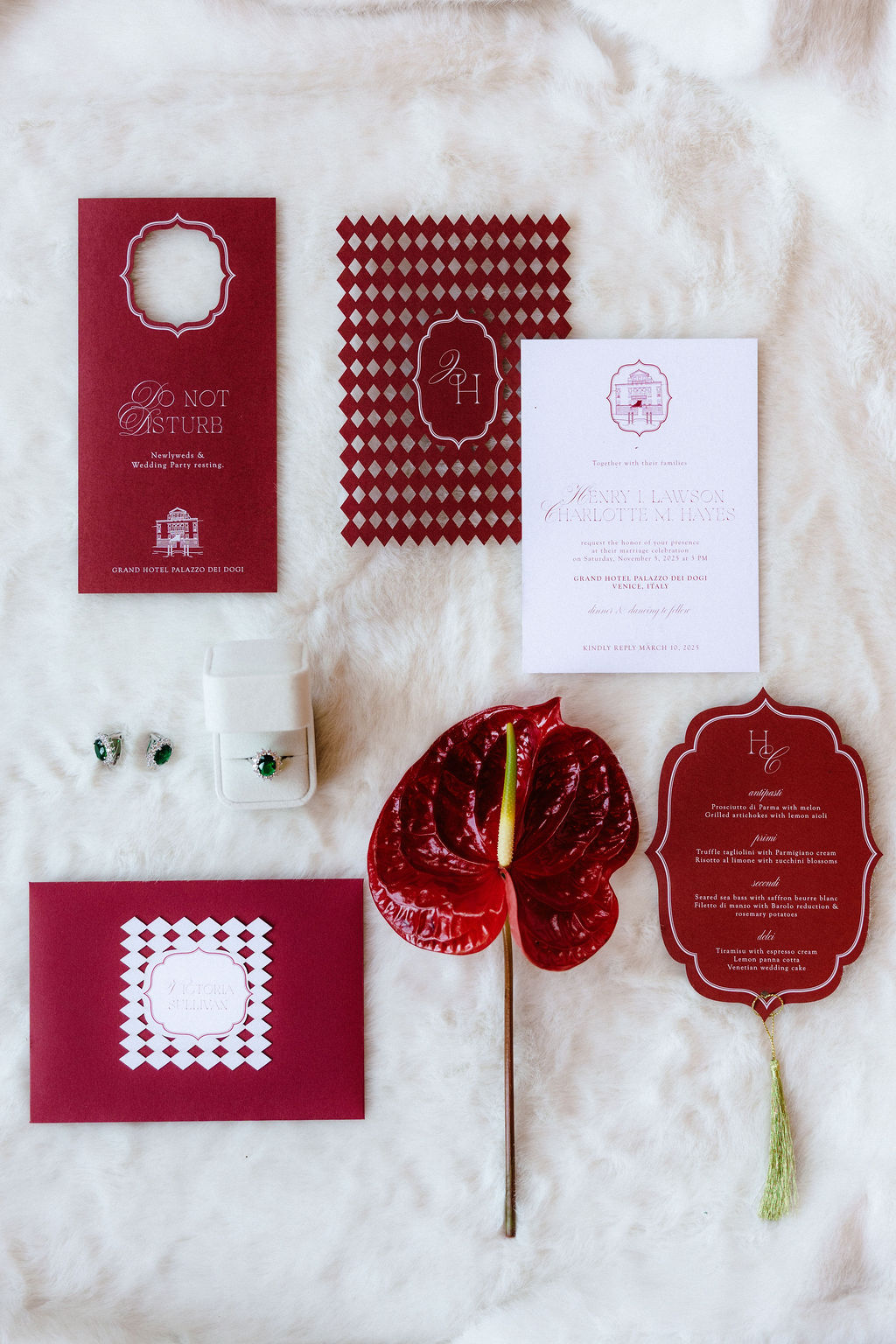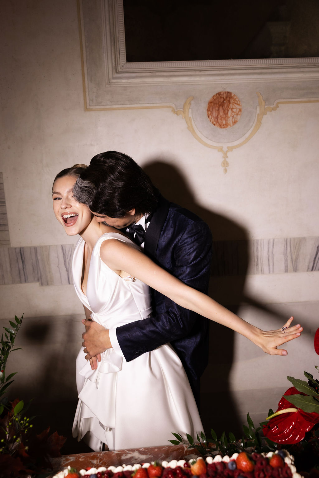Bertelli Fiori designed the florals. Dulces Serie created the cake. And.Everafter handled stationery. Anna Sanachina, an opera soprano, performed—because this is Venice and sometimes the obvious choice is the right one. Integra Rent provided additional elements.