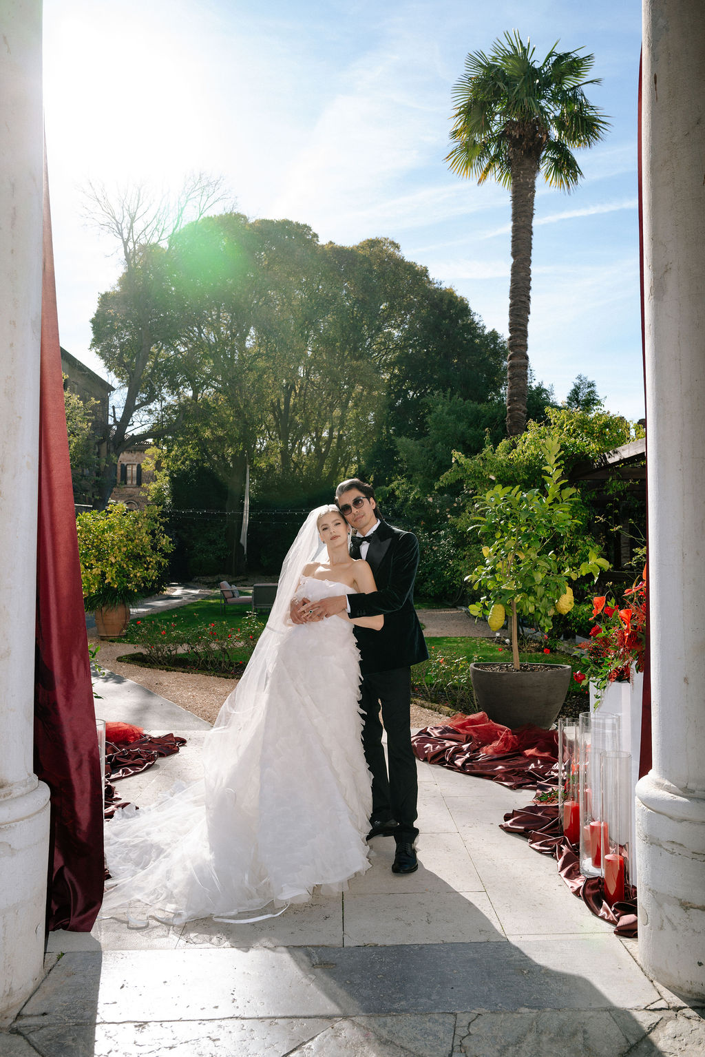 For the groom, Sartoria Fragomeni created two fully custom looks. The Italian bespoke tailoring house has serious sartorial heritage, and it shows. Understated sophistication. Perfect proportions. Exceptional attention to detail. Through a personalized sartorial process and fine Italian fabrics, both outfits embody classic Italian tailoring with refined masculine elegance.