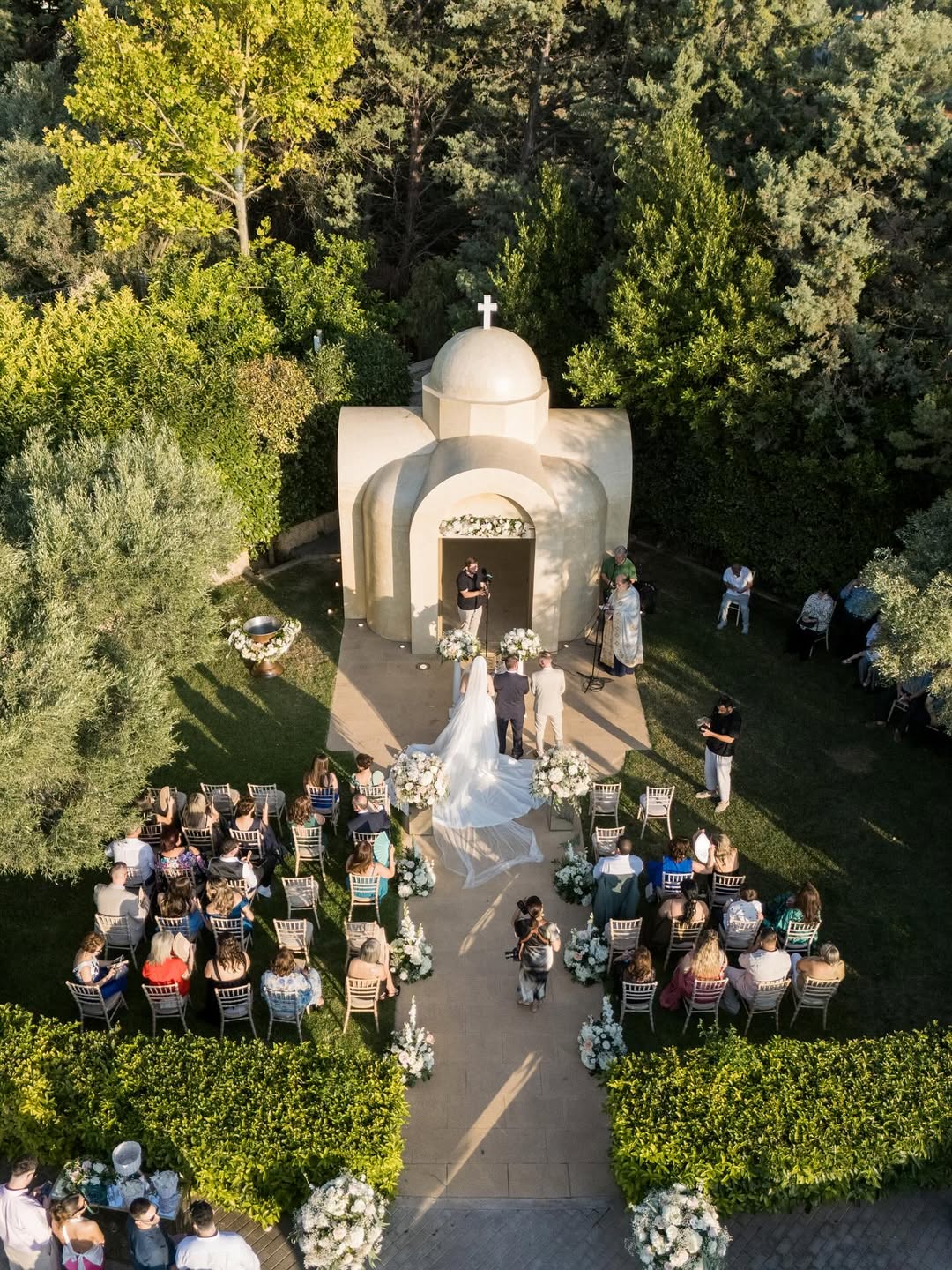 When you choose Ktima Orizontes, you’re not just booking a space — you’re stepping into a setting that was created with weddings in mind. Often featured among the best wedding locations in Athens, this estate spans more than nine acres of lush gardens, poolside terraces, and a charming private church, all tucked away from the rush of the city.